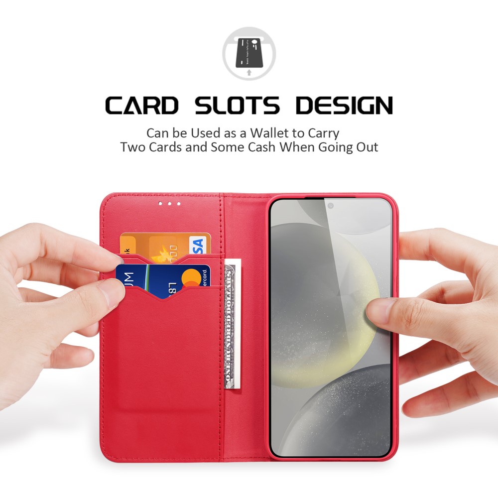 Θήκη Samsung Galaxy S25 Plus 5G / S24 Plus 5G Dux Ducis Hivo Series: Πολυτελής προστασία με βάση στήριξης, RFID Blocking και υποδοχή για κάρτες σε κόκκινο χρώμα.