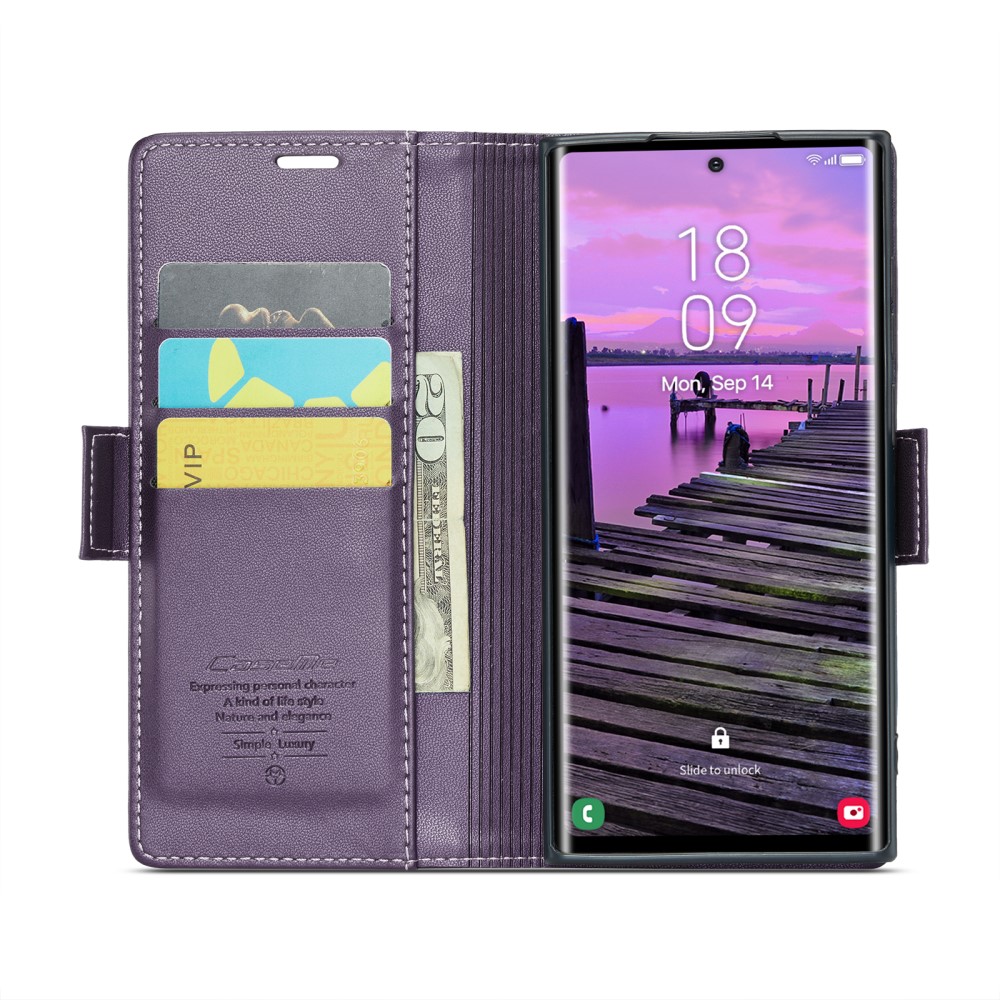 Θήκη Samsung Galaxy S25 Ultra 5G CASEME 023 Series Πορτοφόλι με βάση στήριξης, υποδοχές καρτών και μαγνητικό κούμπωμα από συνθετικό δέρμα και TPU μωβ