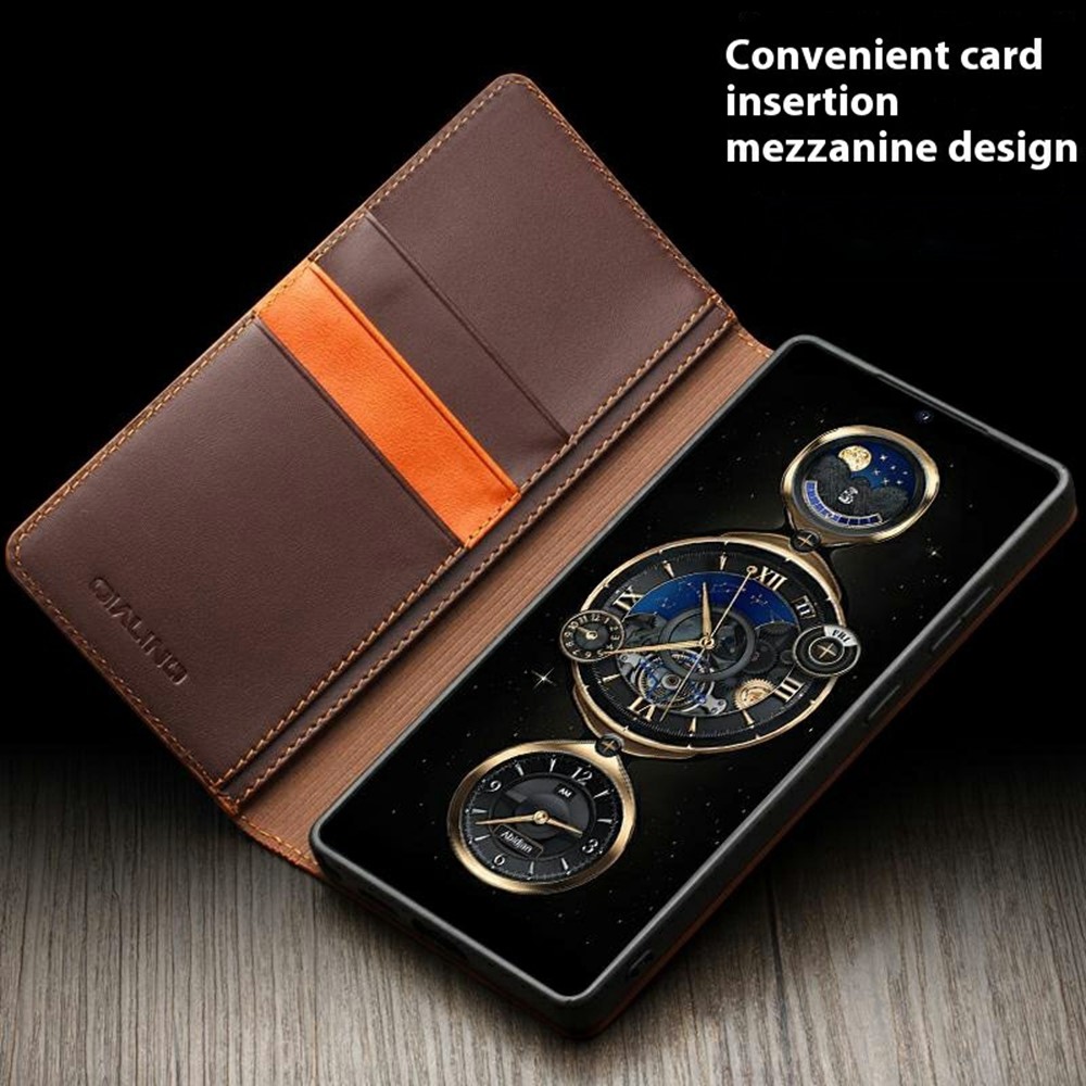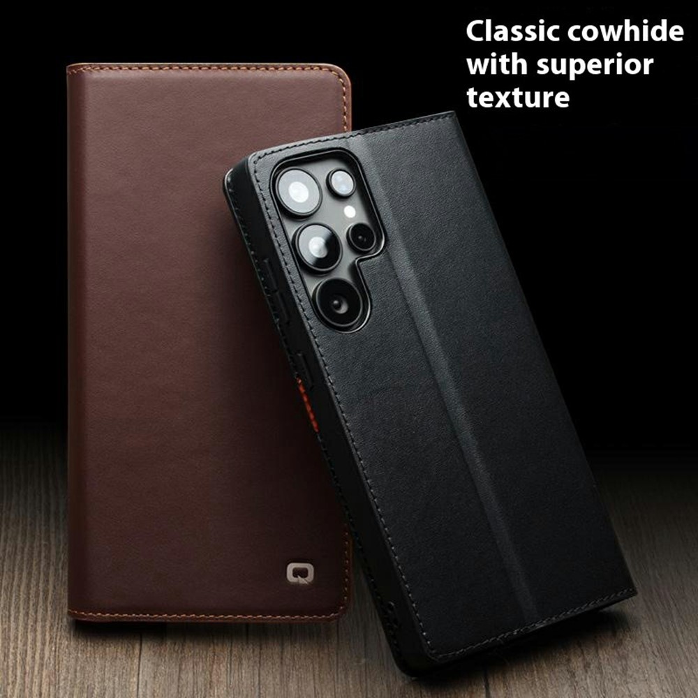 Θήκη Samsung Galaxy S25 Ultra 5G QIALINO book v2 από Premium αυθεντικό δέρμα Genuine Cowhide καφέ σκούρο