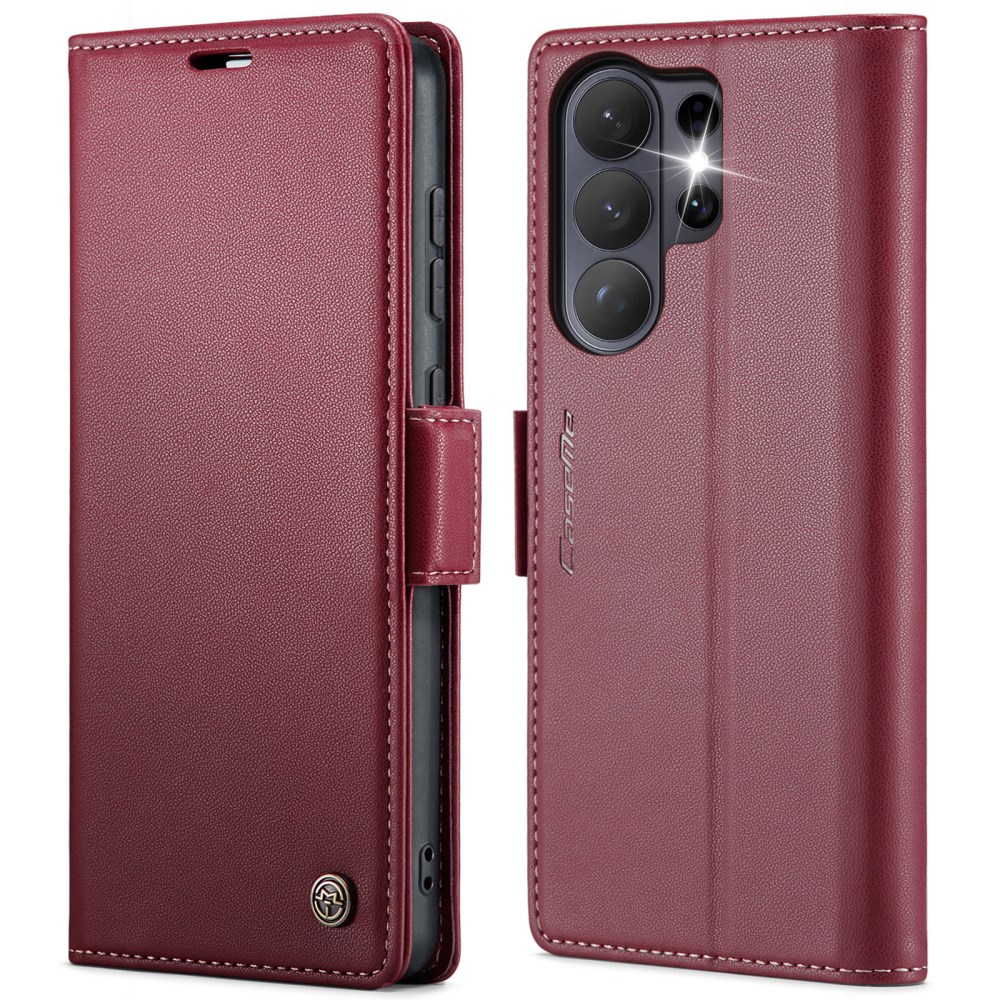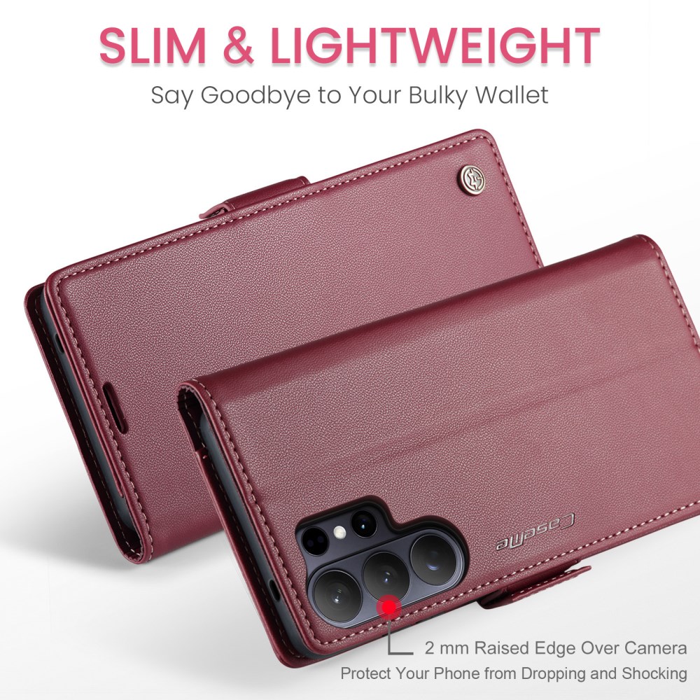 Flip Πορτοφόλι από Συνθετικό Δέρμα (PU) με TPU για Samsung Galaxy S26 Ultra 5G – CASEME 023 Series με RFID Blocking, θήκες καρτών και stand σε κόκκινο χρώμα.