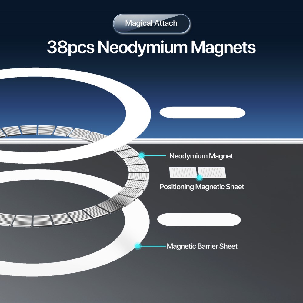 • MagSafe: Ενσωματωμένος μαγνητικός δακτύλιος με 38 μαγνήτες Neodymium για ισχυρή σύνδεση και φόρτιση MagSafe