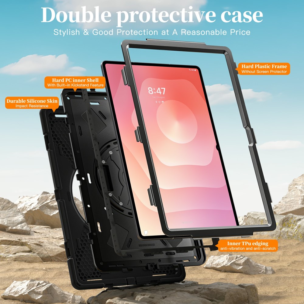 Η Σκληρή Θήκη PC+TPU με Stand συνδυάζει λειτουργικότητα και προστασία Heavy Duty για το Samsung Galaxy Tab S11 Ultra σας. Ιδανική επιλογή για επαγγελματική και ψυχαγωγική χρήση με στυλ και ασφάλεια.