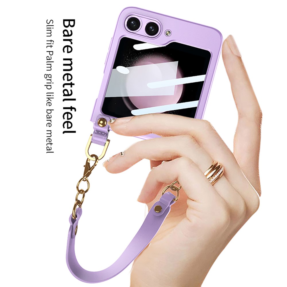 Θήκη Samsung Galaxy Z Flip5 5G GKK Full Premium Protection με προστασία οθόνης Tempered Glass και κορδονάκι για το χέρι από σκληρό πλαστικό μαύρο
