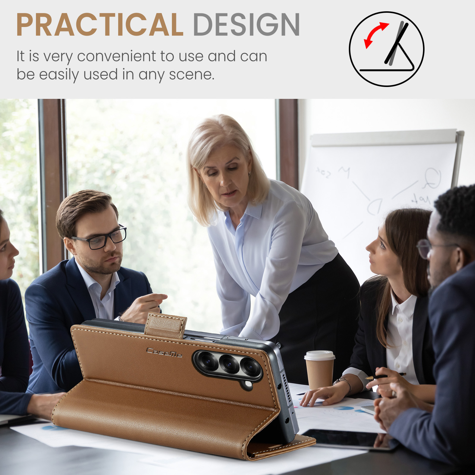 Θήκη Samsung Galaxy Z Fold7 5G CASEME 023 Series Πορτοφόλι με βάση στήριξης, υποδοχές καρτών και μαγνητικό κούμπωμα από συνθετικό δέρμα και TPU καφέ