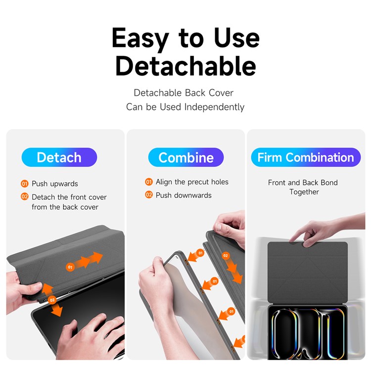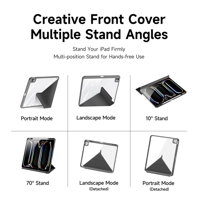 Θήκη iPad Pro (2024) 13″ DUX DUCIS Magi Series Tri-Fold με πολλαπλές θέσεις στήριξης, ειδική θέση για πενάκι και διάφανη ενισχυμένη πλάτη γκρι