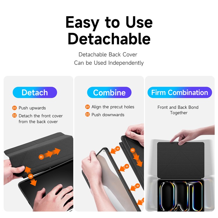 Θήκη iPad Pro (2024) 13″ DUX DUCIS Magi Series Tri-Fold με πολλαπλές θέσεις στήριξης, ειδική θέση για πενάκι και διάφανη ενισχυμένη πλάτη μαύρο