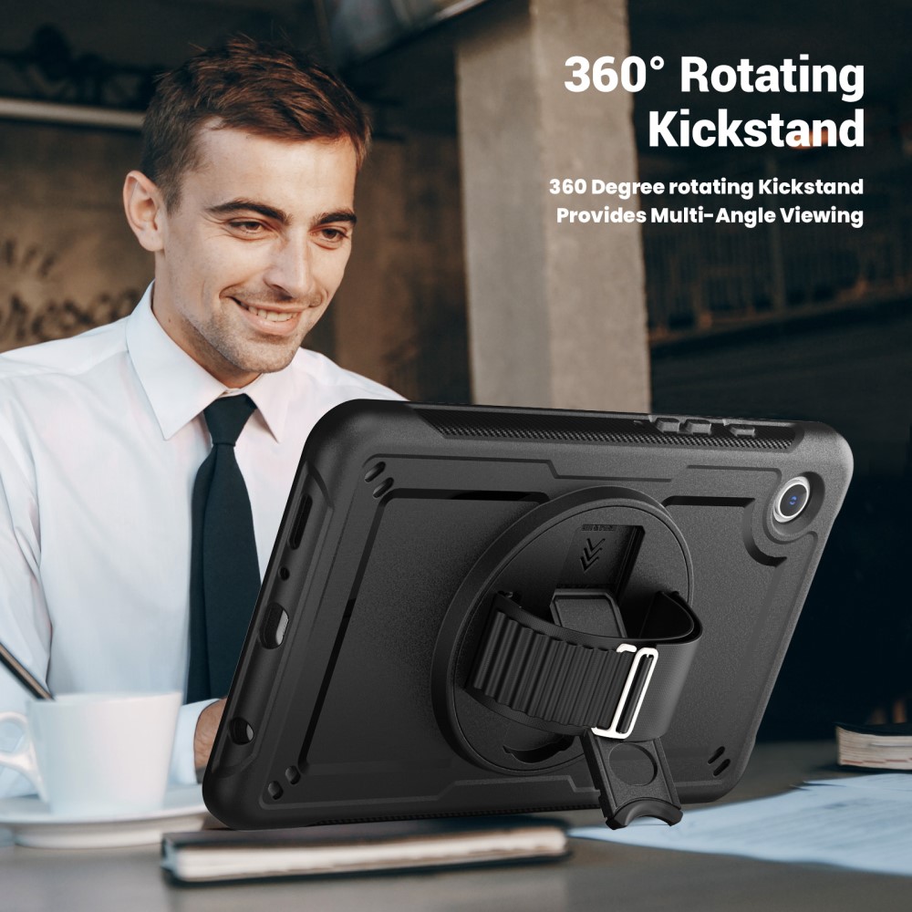 Θήκη Tablet Samsung Galaxy Tab A9 / Α11 8.7″ Mad Mask Premium V3 με βάση στήριξης, ενισχυμένες γωνίες , περιστρεφόμενο Hand Strap και ειδικό θέση για πενάκι, διπλή προστασία Πλάτη μαύρο