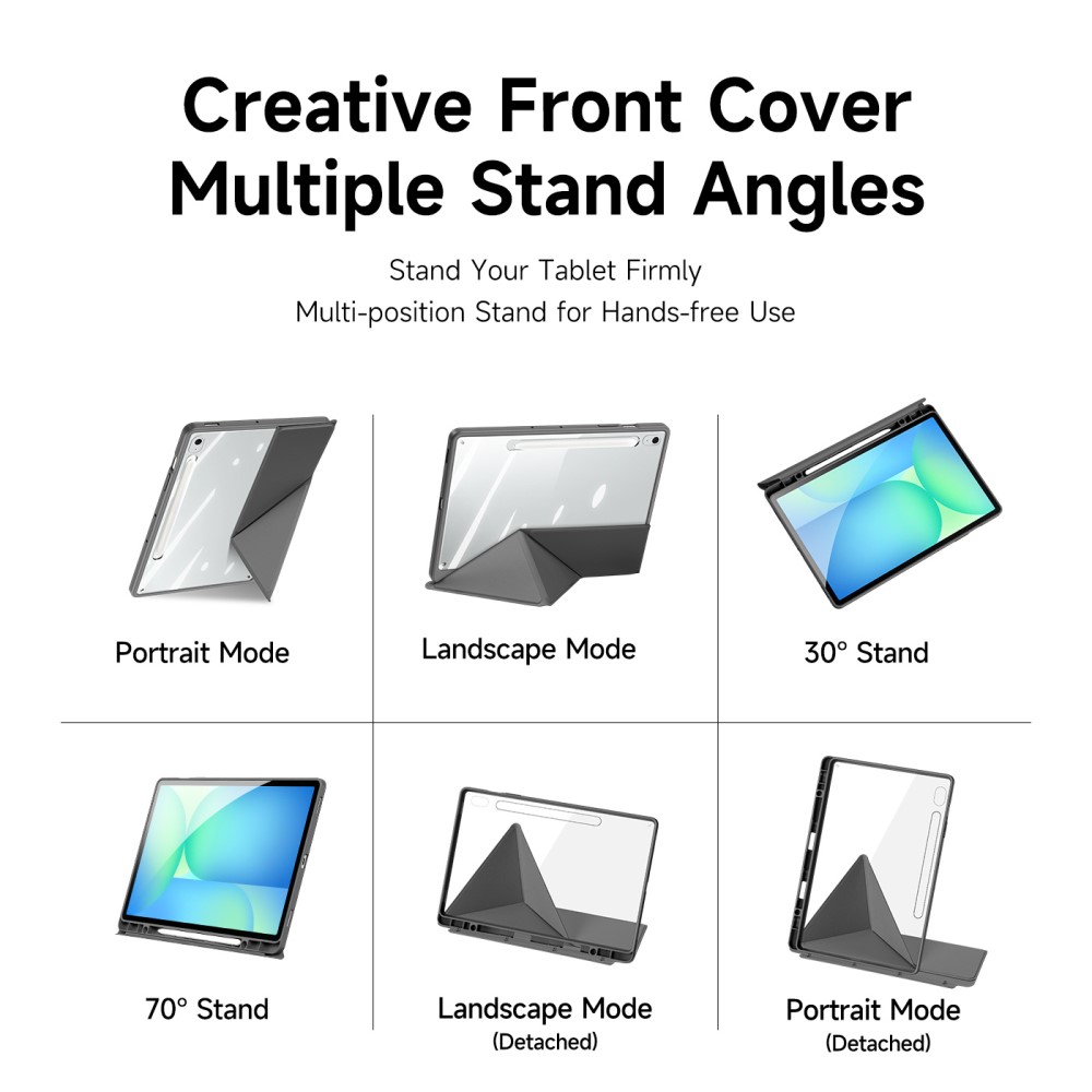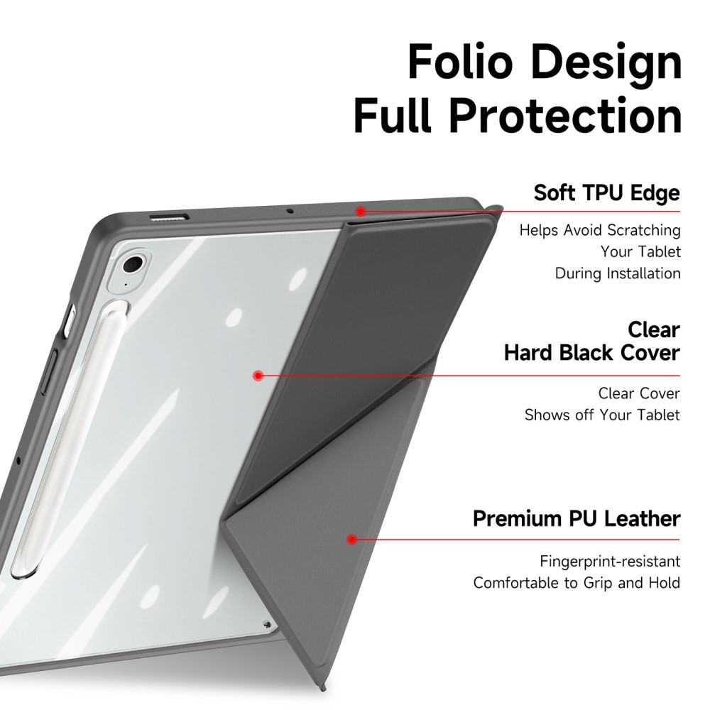 Θήκη Samsung Galaxy Tab S10 FE+ 13.1 DUX DUCIS Magi Series Tri-Fold με πολλαπλές θέσεις στήριξης, ειδική θέση για πενάκι και διάφανη ενισχυμένη πλάτη γκρι