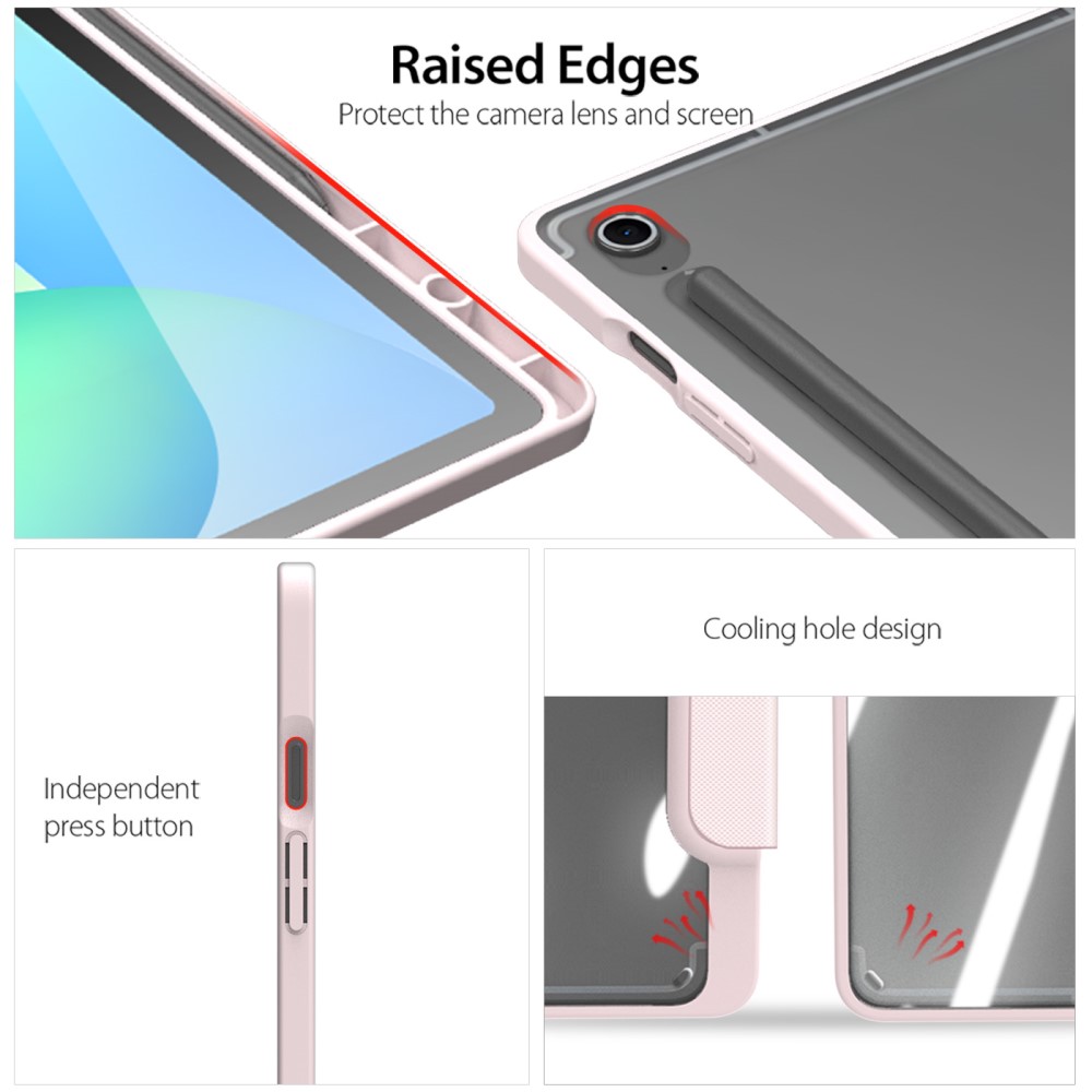 Θήκη Samsung Galaxy Tab S10 FE+ 13.1 DUX DUCIS Toby Series Tri-Fold με ειδική θέση για πενάκι και διάφανη ενισχυμένη πλάτη ροζ