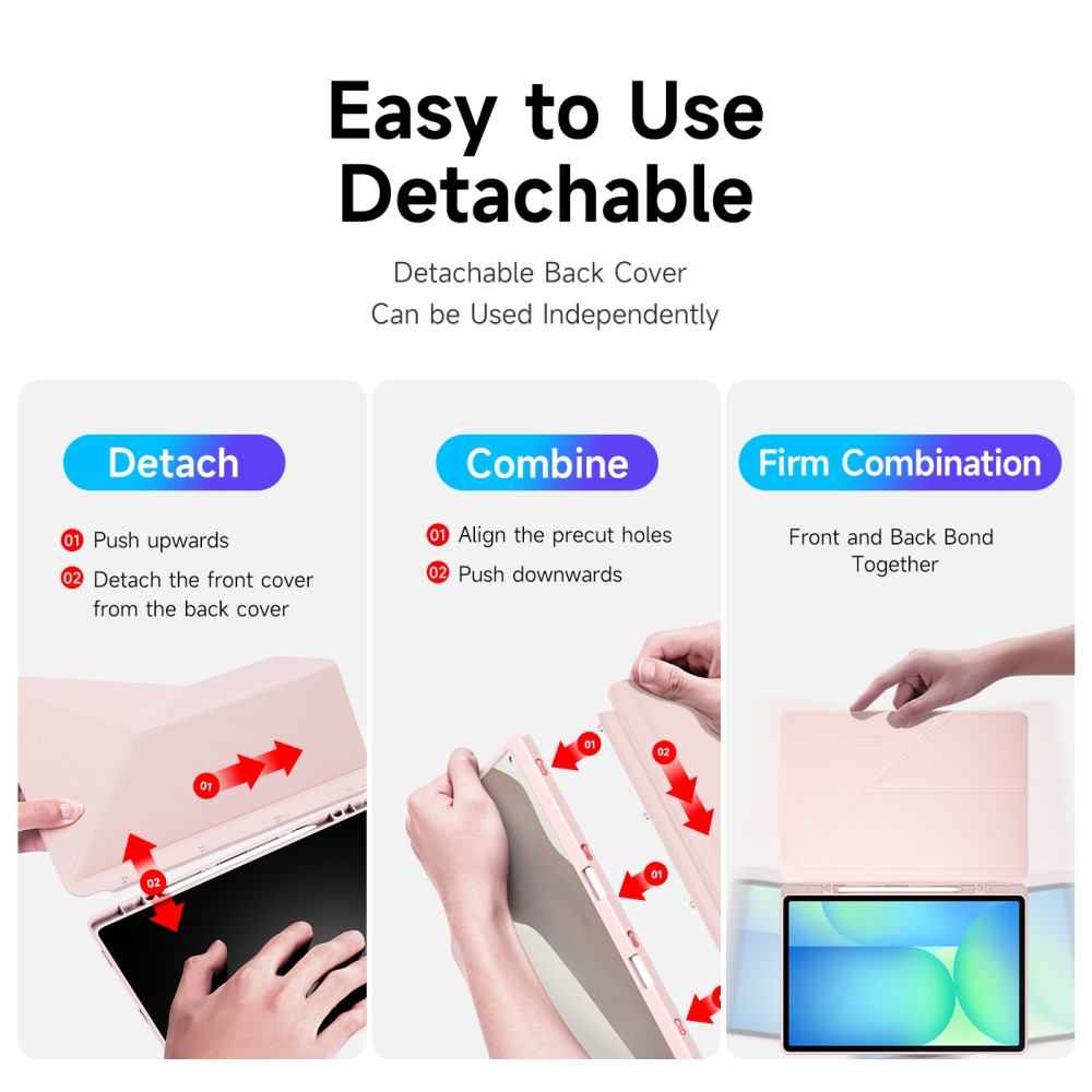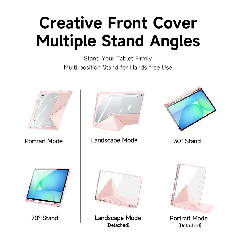 Θήκη Samsung Galaxy Tab S10 FE+ 13.1 DUX DUCIS Magi Series Tri-Fold με πολλαπλές θέσεις στήριξης, ειδική θέση για πενάκι και διάφανη ενισχυμένη πλάτη ροζ