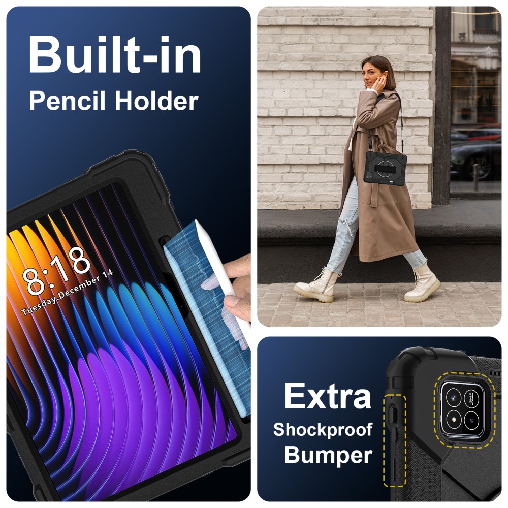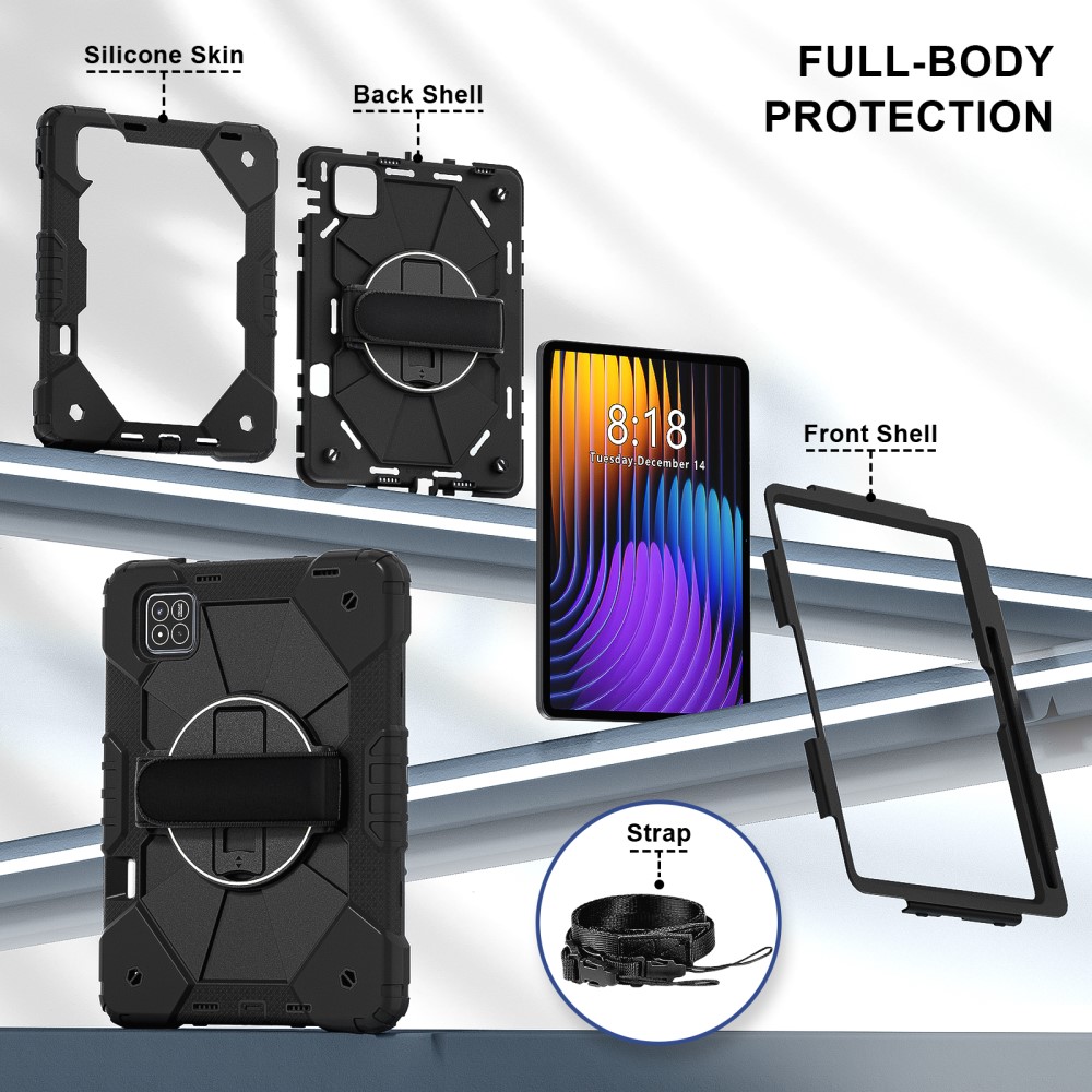Θήκη Xiaomi Pad 7 11.2 / Pad 7 Pro 11.2 Mad Mask Θήκη Premium με βάση στήριξης, ενισχυμένες γωνίες και ειδικό λουράκι μεταφοράς, διπλή προστασία Πλάτη μαύρο