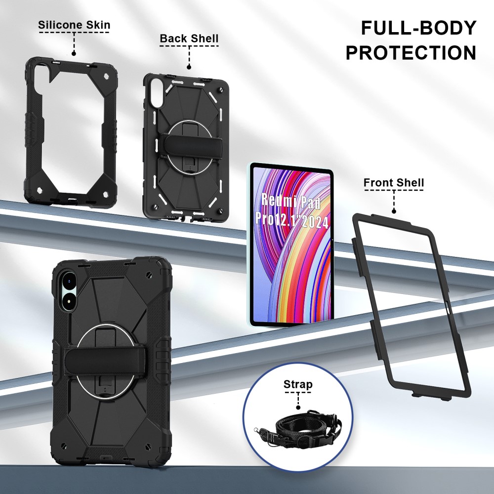 Θήκη Tablet Xiaomi Redmi Pad Pro 12.1″ / Pro 5G 12.1″ Mad Mask Premium με βάση στήριξης, ενισχυμένες γωνίες και ειδικό λουράκι μεταφοράς, διπλή προστασία Πλάτη μαύρο