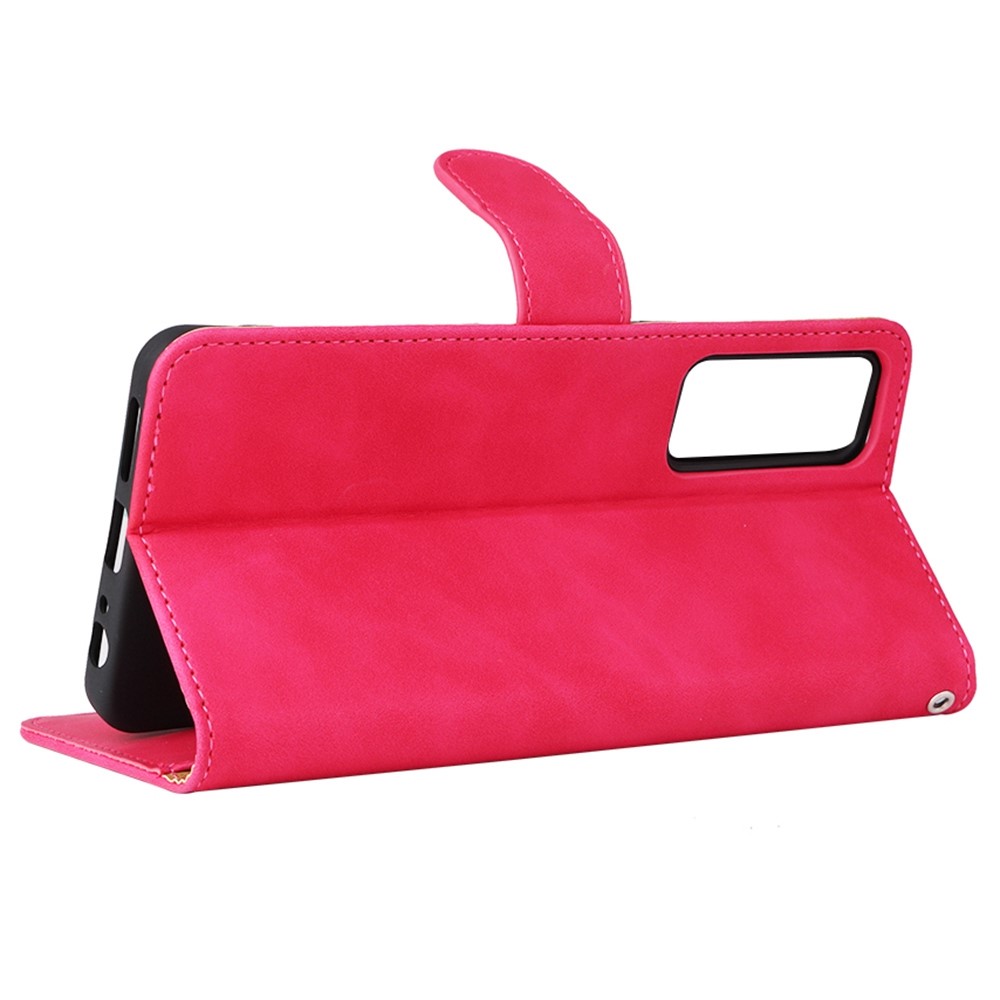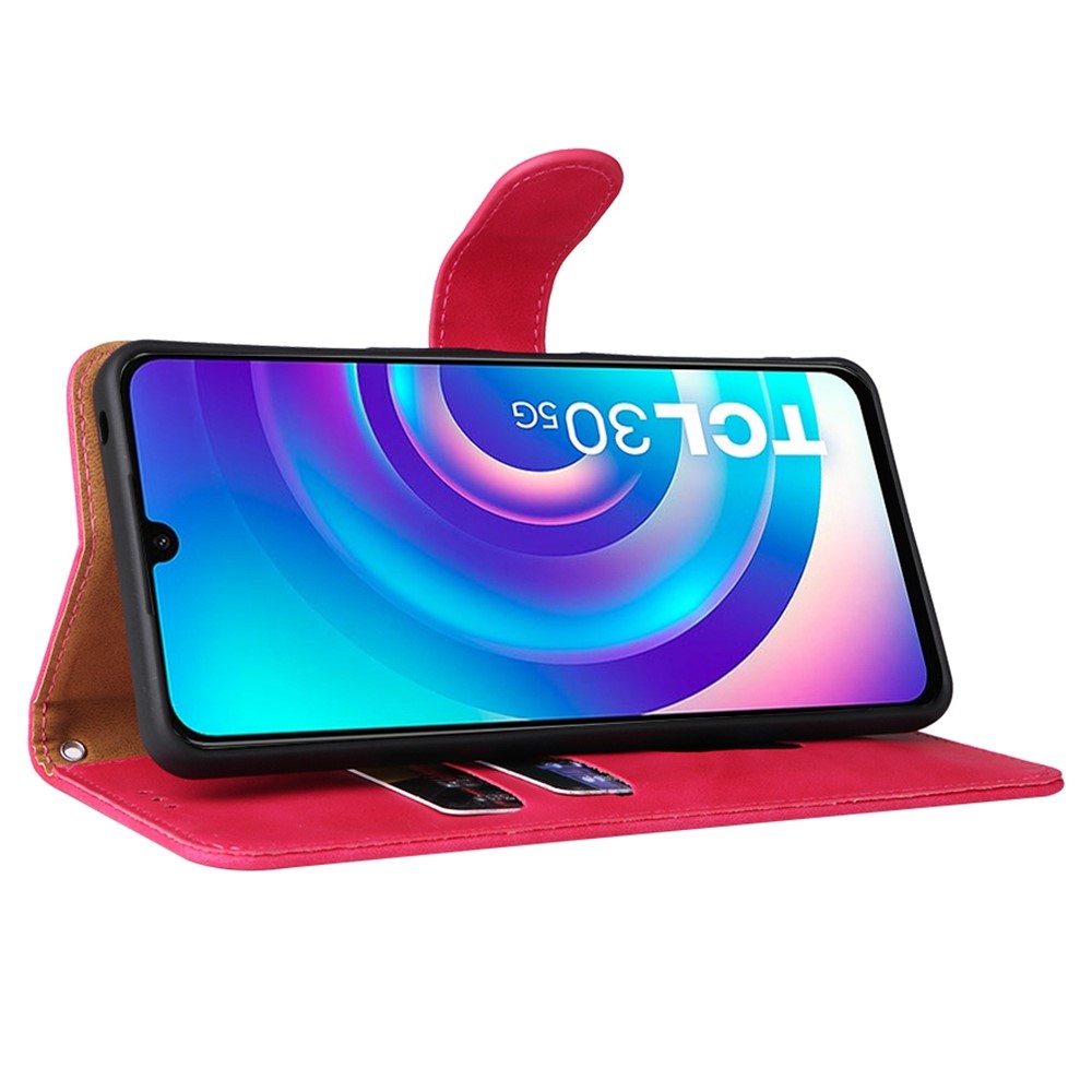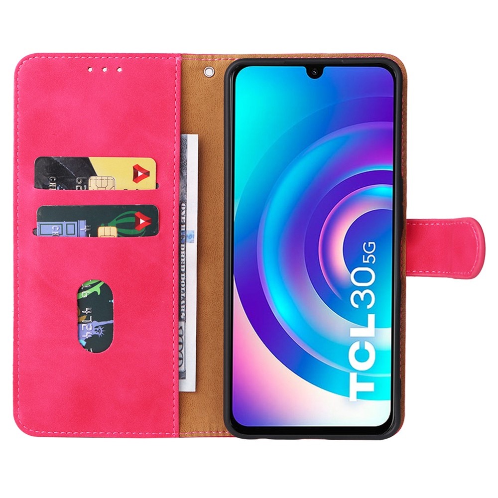 Θήκη TCL 30 / 30+ Mad Mask Litchi Skin Texture Leather με βάση στήριξης, υποδοχές καρτών και μαγνητικό κούμπωμα φούξια