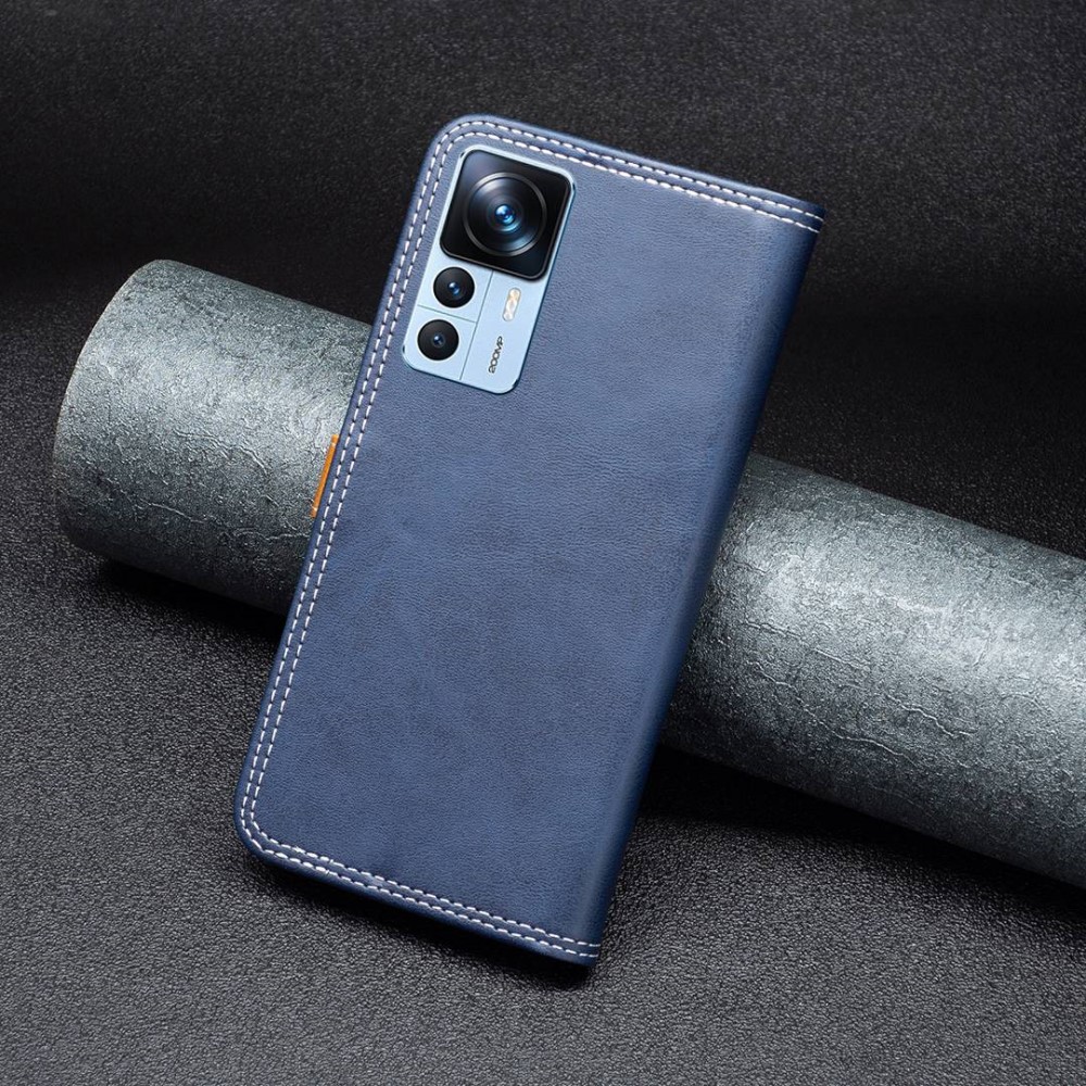 Θήκη Xiaomi 12T 5G / 12T Pro 5G BINFEN COLOR Leather Wallet Double Stitching Lines με βάση στήριξης, υποδοχές καρτών και μαγνητικό κούμπωμα μπλε