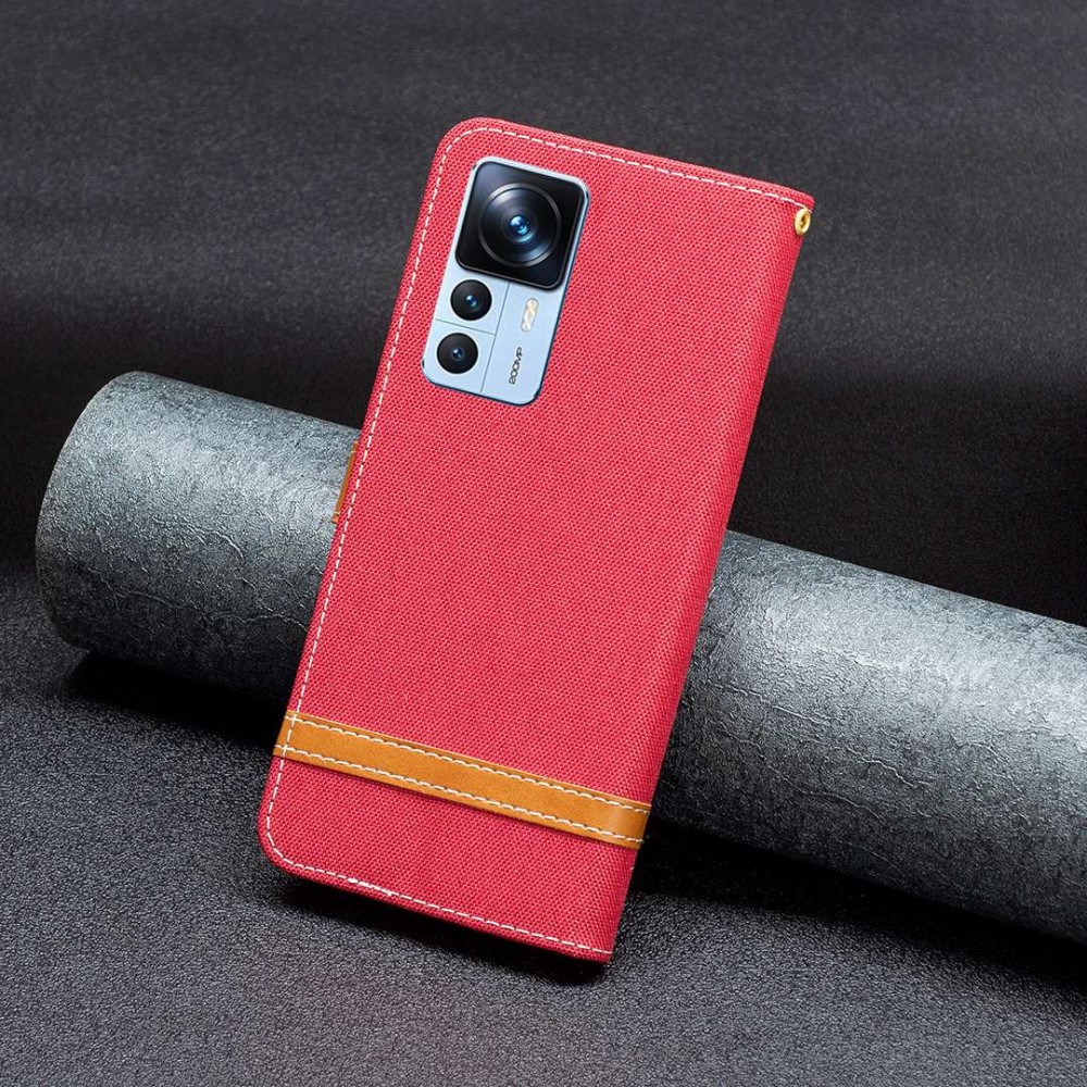 Θήκη Xiaomi 12T 5G / 12T Pro 5G Mad Mask Jean coated skin v2 με βάση στήριξης, υποδοχές καρτών και μαγνητικό κούμπωμα κόκκινο
