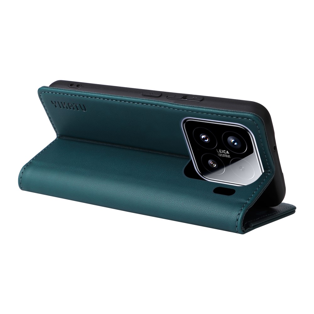 Θήκη Xiaomi 15 YIKATU Folio Series v5 με βάση στήριξης, υποδοχή καρτών και μαγνητικό κούμπωμα Flip Wallet από συνθετικό δέρμα και TPU πράσινο