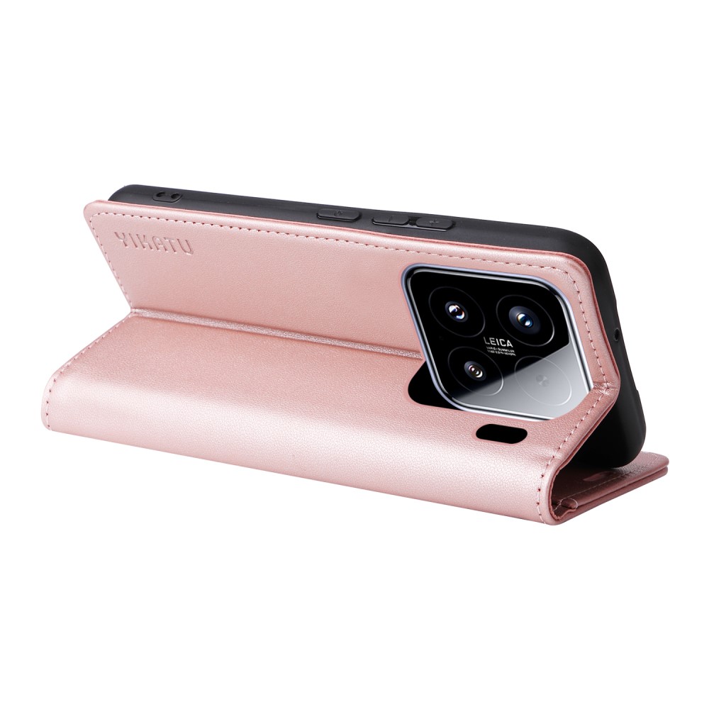 Θήκη Xiaomi 15 YIKATU Folio Series v5 με βάση στήριξης, υποδοχή καρτών και μαγνητικό κούμπωμα Flip Wallet από συνθετικό δέρμα και TPU ροζ χρυσό
