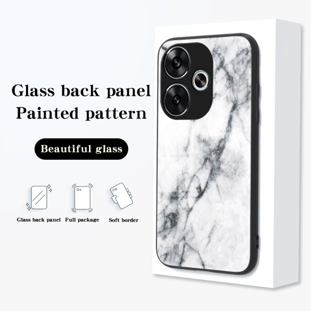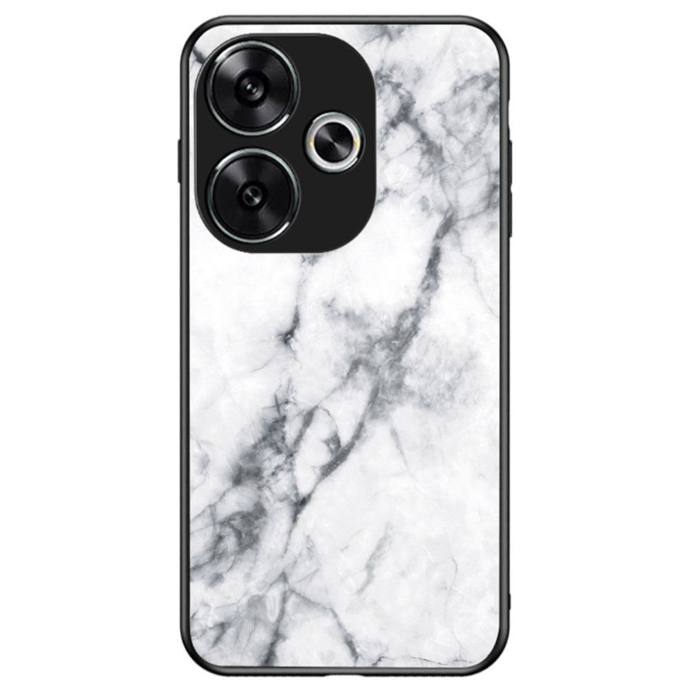Θήκη Xiaomi Poco F6 5G OEM σχέδιο Marble με Πλάτη Tempered Glass TPU λευκό