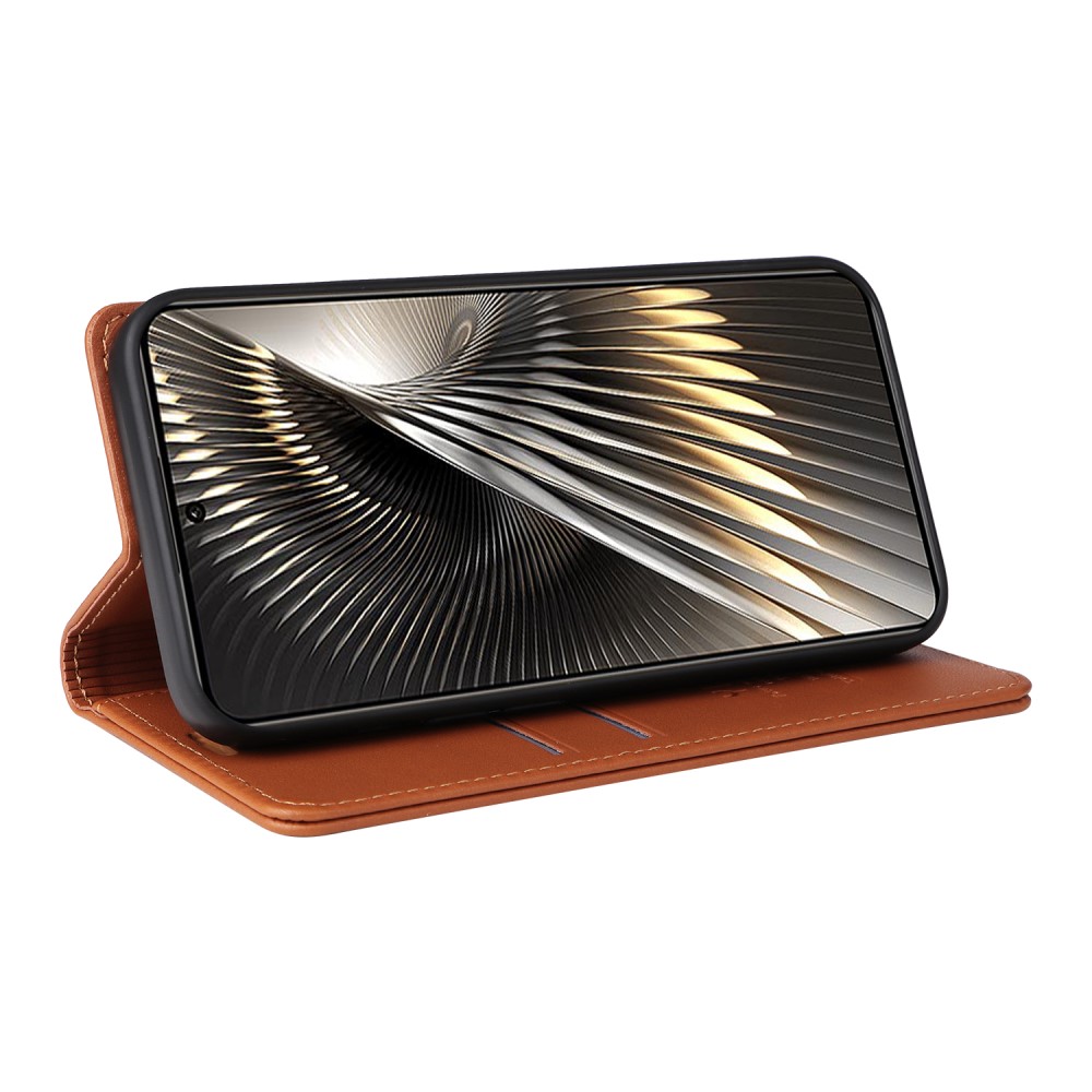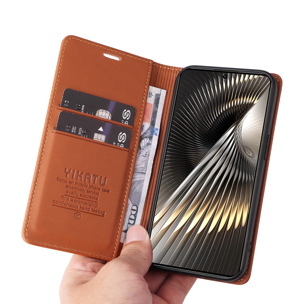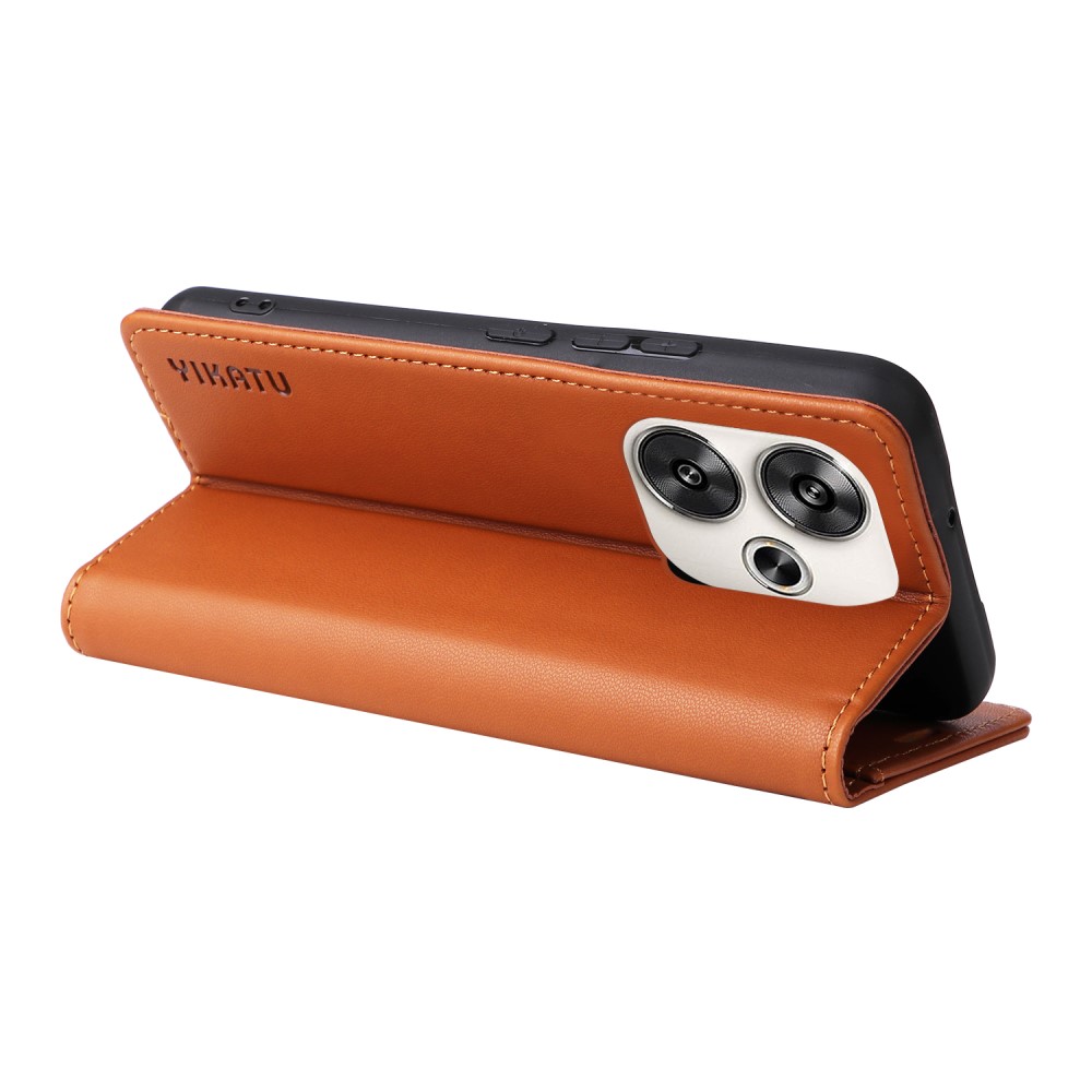 Θήκη Xiaomi Poco F6 5G YIKATU Folio Series με βάση στήριξης, υποδοχή καρτών και μαγνητικό κούμπωμα Flip Wallet από συνθετικό δέρμα και TPU καφέ ανοιχτό