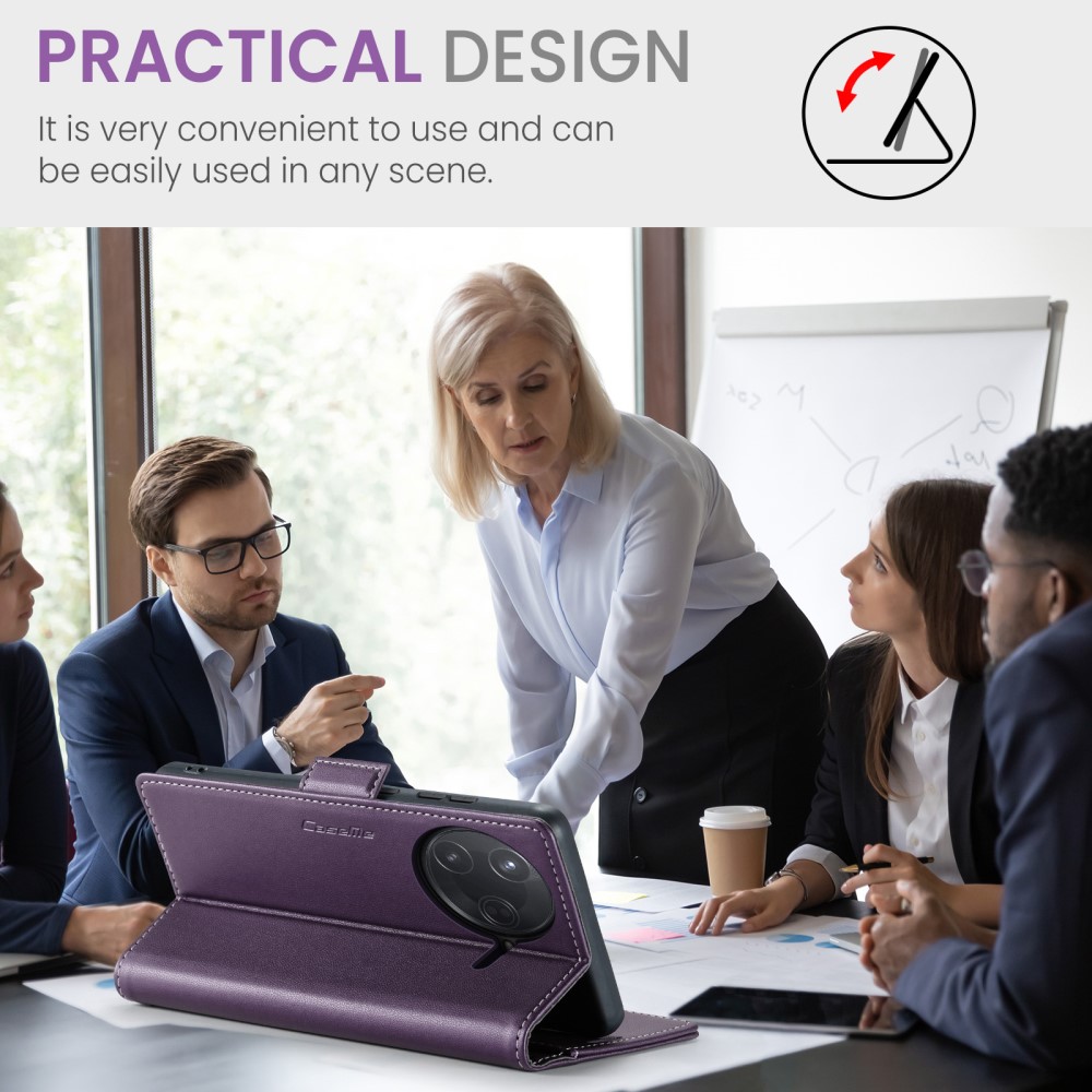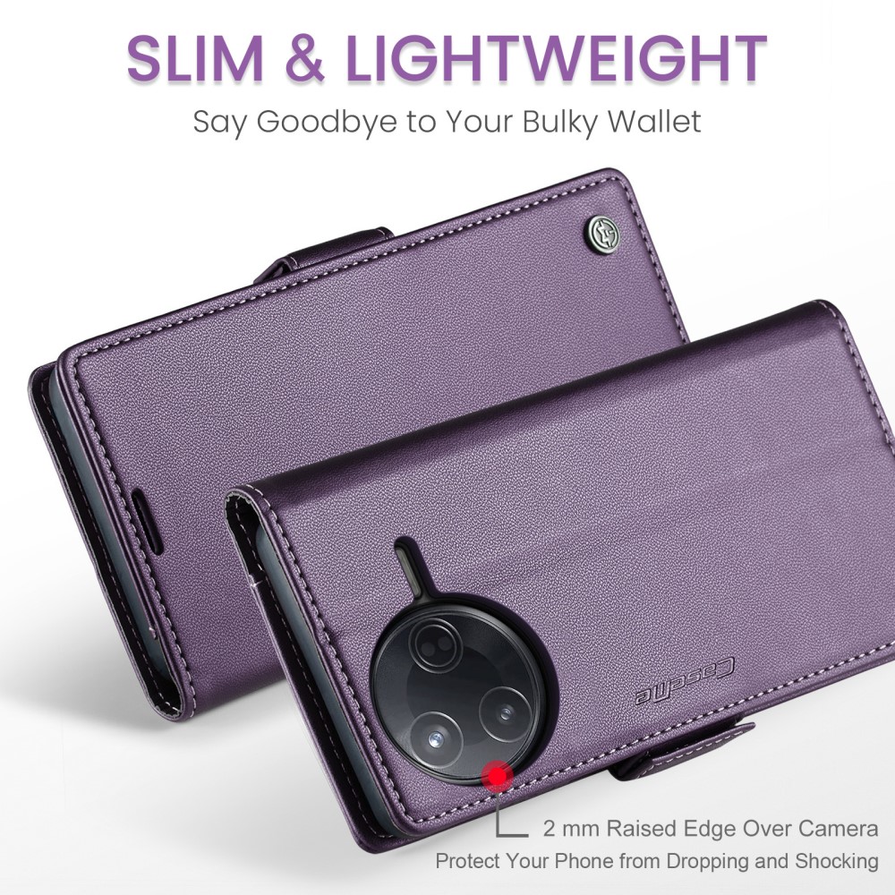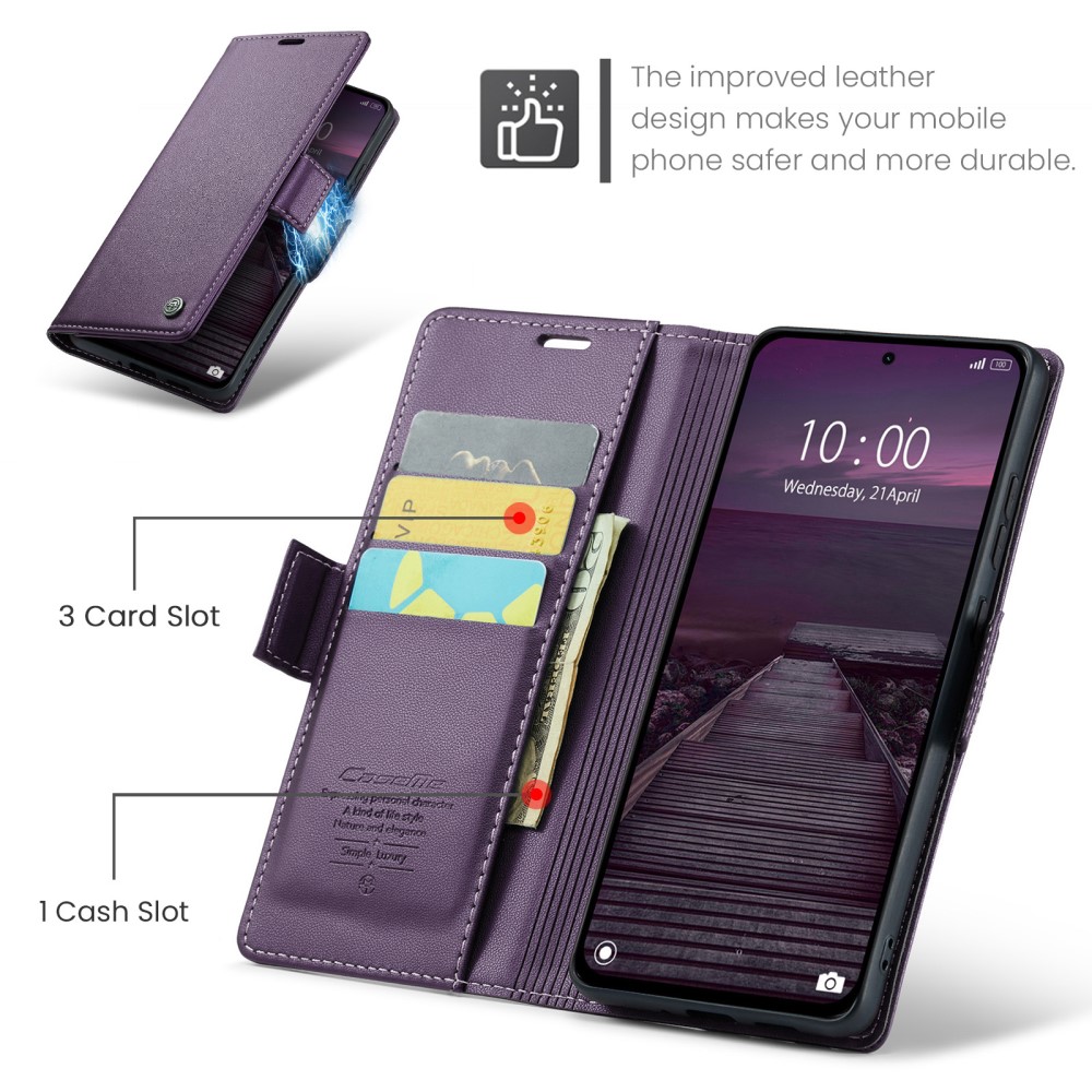 Θήκη Xiaomi Poco F7 Pro 5G CASEME 023 Series Πορτοφόλι με βάση στήριξης, υποδοχές καρτών και μαγνητικό κούμπωμα από συνθετικό δέρμα και TPU μωβ