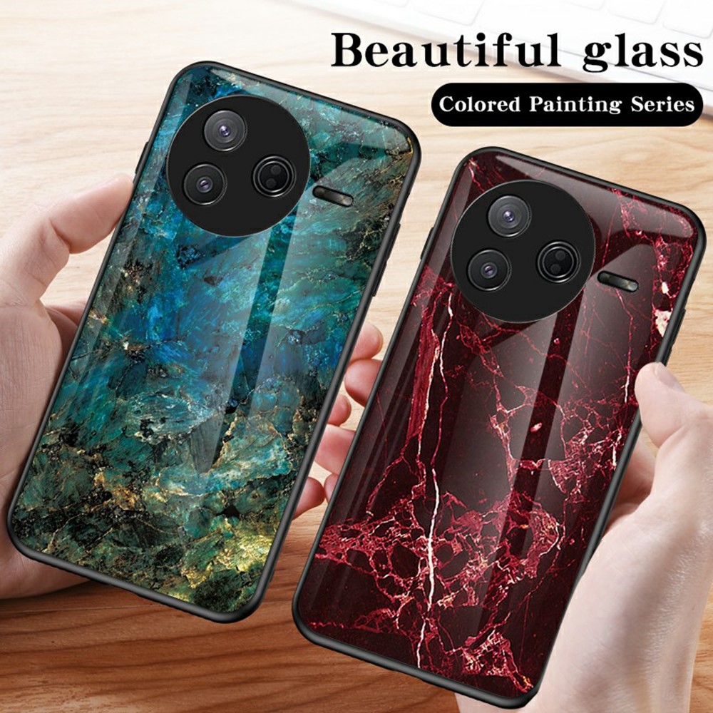 Θήκη Xiaomi Poco F7 Pro 5G / Poco F7 Ultra 5G OEM σχέδιο Marble με Πλάτη Tempered Glass TPU σμαραγδί