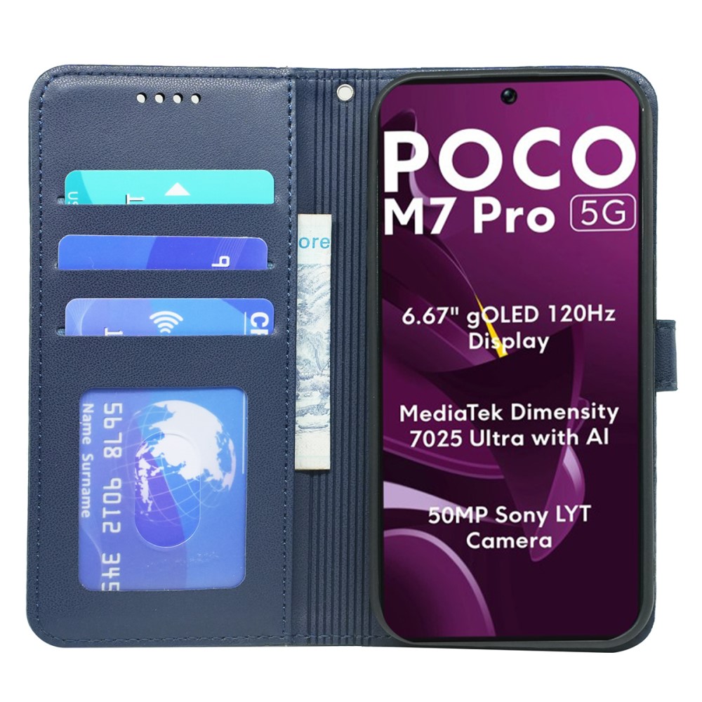 Θήκη Xiaomi Poco M7 Pro 5G Mad Mask PU Leather Series V4 με βάση στήριξης, υποδοχές καρτών και μαγνητικό κούμπωμα μπλε