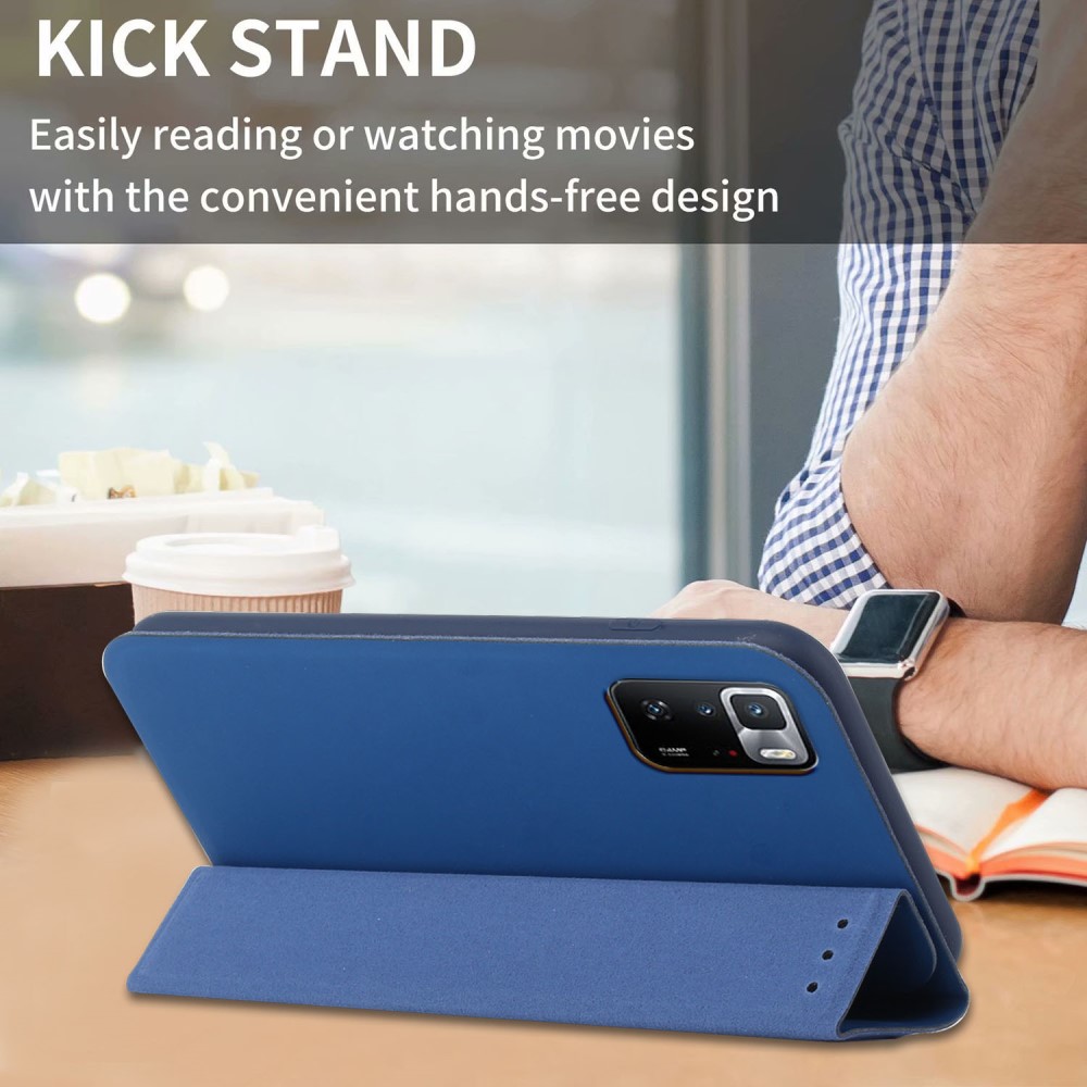 Θήκη Xiaomi Poco X3 GT OEM Skin Touch Leather με βάση στήριξης Trifold και μαγνητικό κούμπωμα Flip από συνθετικό δέρμα και TPU μπλε