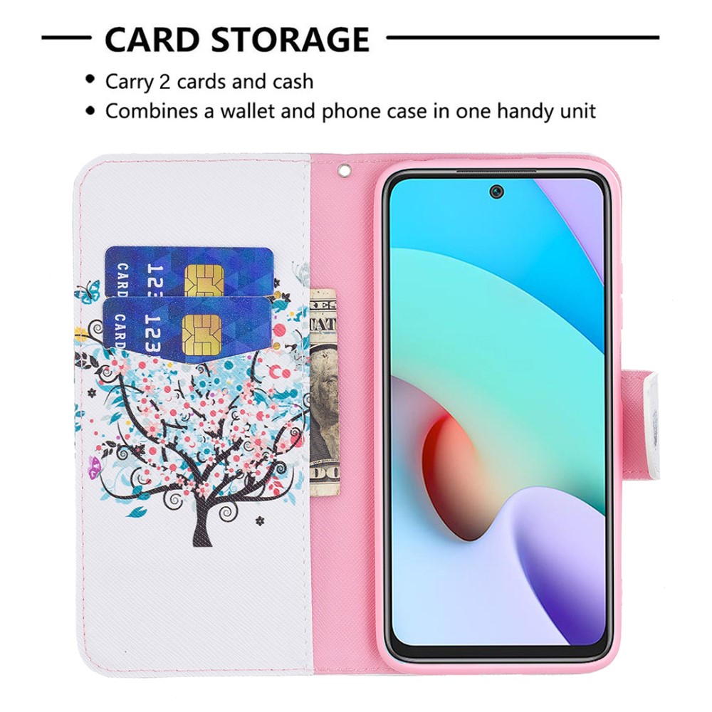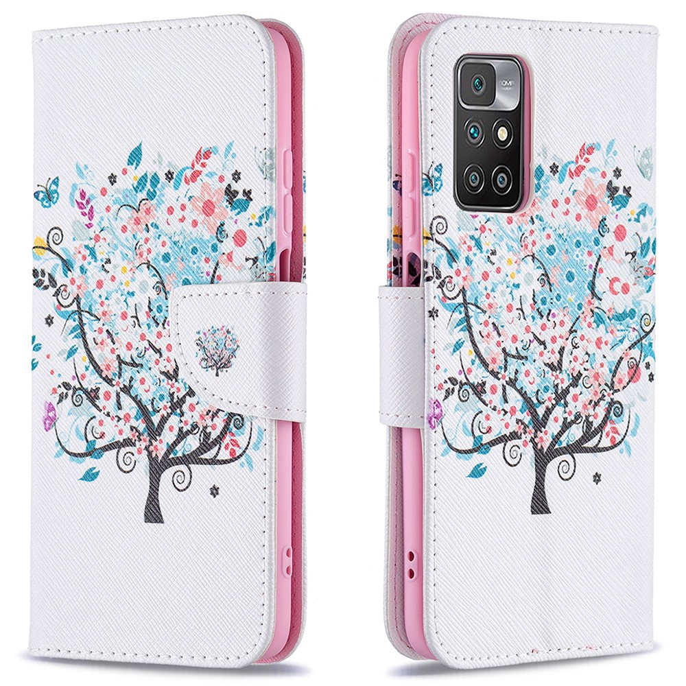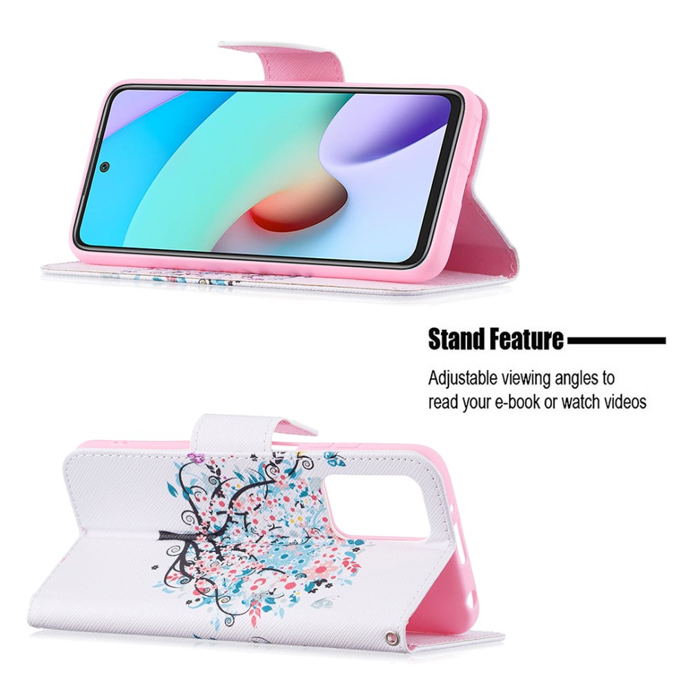 Θήκη Xiaomi Redmi 10 / Redmi 10 (2022) OEM Flowered Tree με βάση στήριξης, υποδοχές καρτών και μαγνητικό κούμπωμα Flip Wallet από συνθετικό δέρμα και TPU