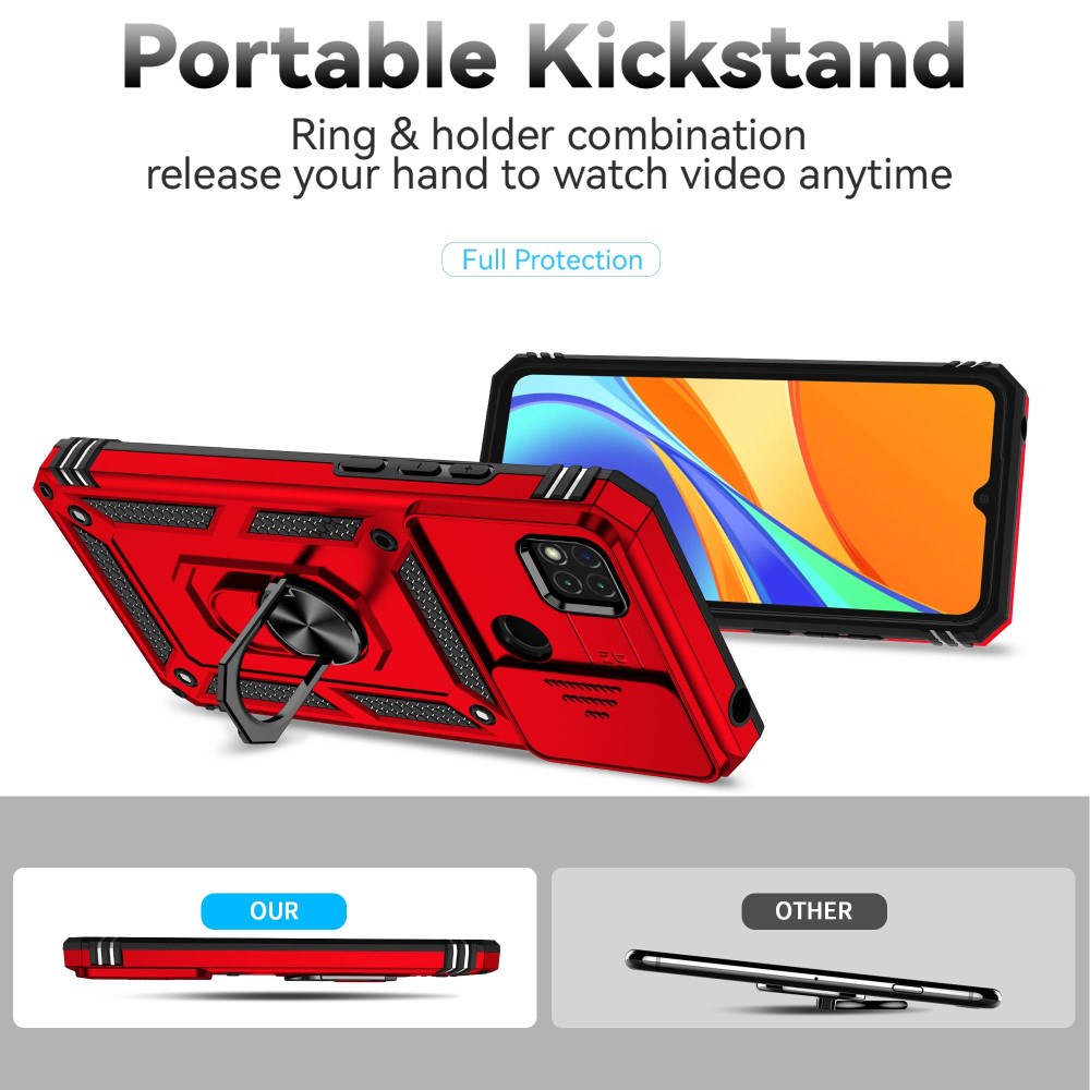 Θήκη Xiaomi Redmi 10A Mad Mask Camshield Armor Guard Πλάτη με προστασία για την κάμερα, Kickstand και Βάση στήριξης από σκλήρό Premium TPU κόκκινο