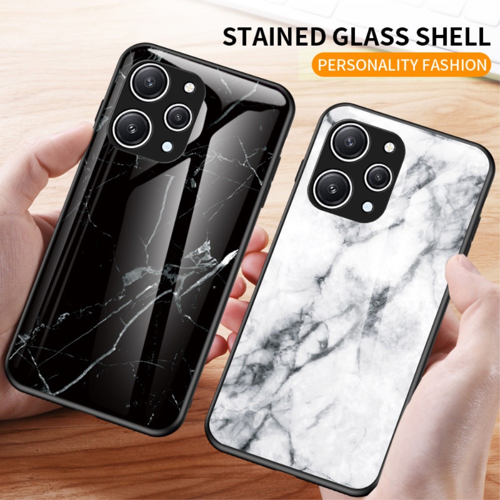 Θήκη Xiaomi Redmi 12 OEM σχέδιο Marble με Πλάτη Tempered Glass TPU λευκό