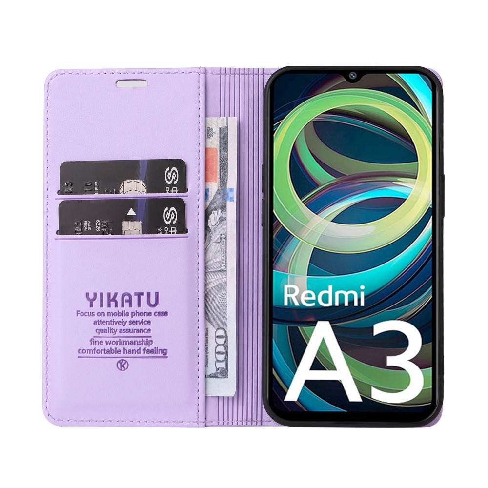 Θήκη Xiaomi Redmi A3 YIKATU Folio Series με βάση στήριξης, υποδοχή καρτών και μαγνητικό κούμπωμα Flip Wallet από συνθετικό δέρμα και TPU μωβ ανοιχτό