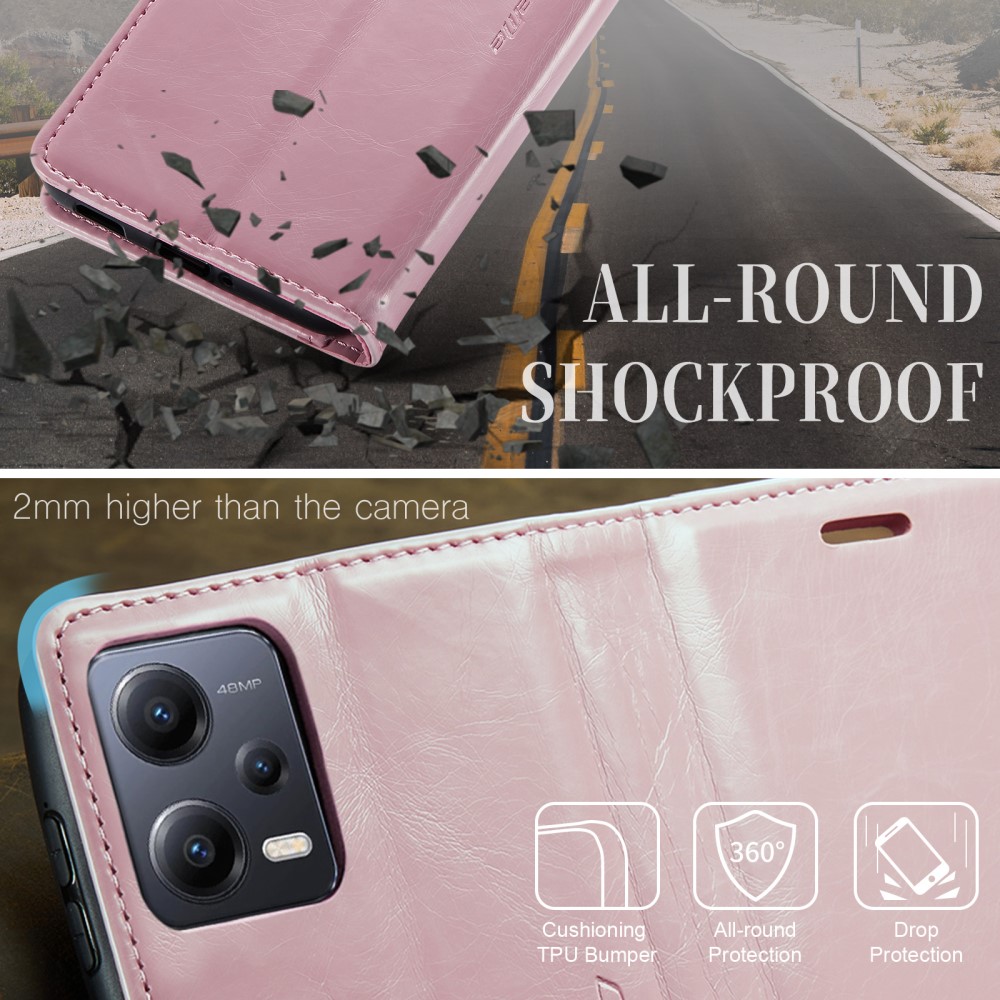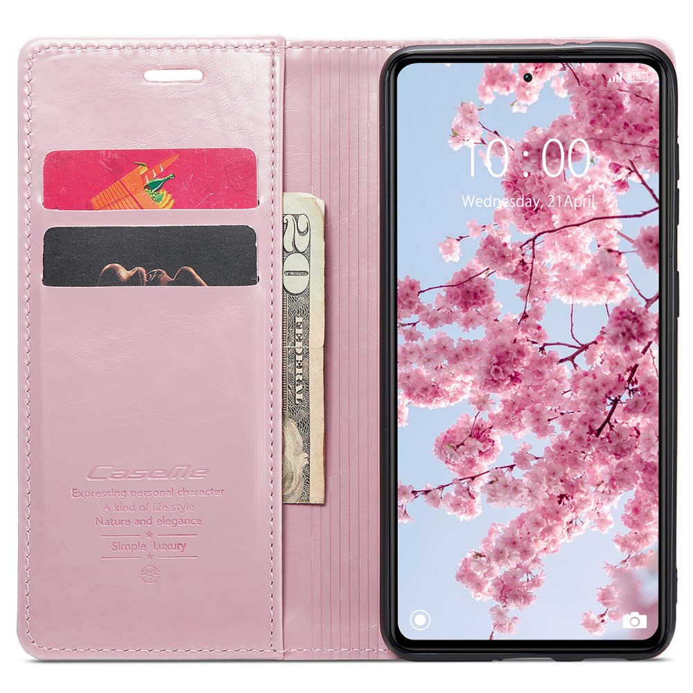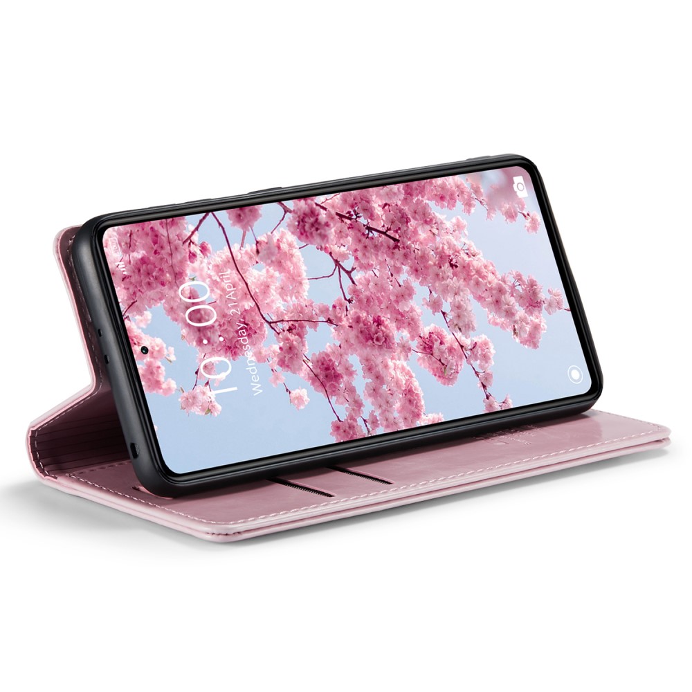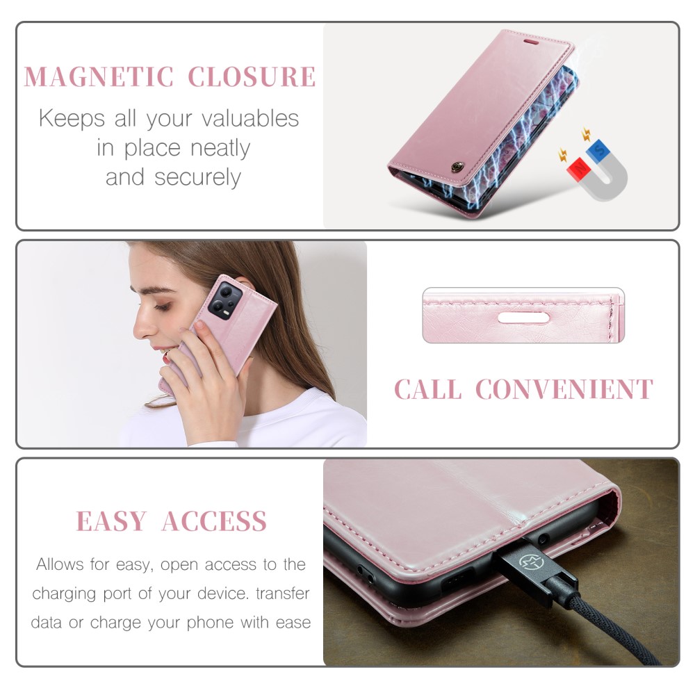 Θήκη Xiaomi Redmi Note 12 Pro+ CaseMe 003 Series Πορτοφόλι με βάση στήριξης, υποδοχές καρτών και μαγνητικό κούμπωμα από συνθετικό δέρμα και TPU ροζ