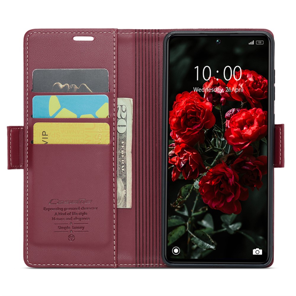 Θήκη Xiaomi Redmi Note 13 Pro 5G / Poco X6 5G CASEME 023 Series Πορτοφόλι με βάση στήριξης, υποδοχές καρτών και μαγνητικό κούμπωμα από συνθετικό δέρμα και TPU κόκκινο