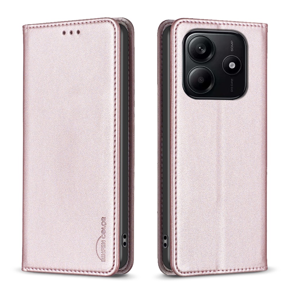 Θήκη Xiaomi Redmi Note 14 5G BINFEN COLOR Leather Wallet series 9 με βάση στήριξης, υποδοχές καρτών και μαγνητικό κούμπωμα ροζ χρυσό
