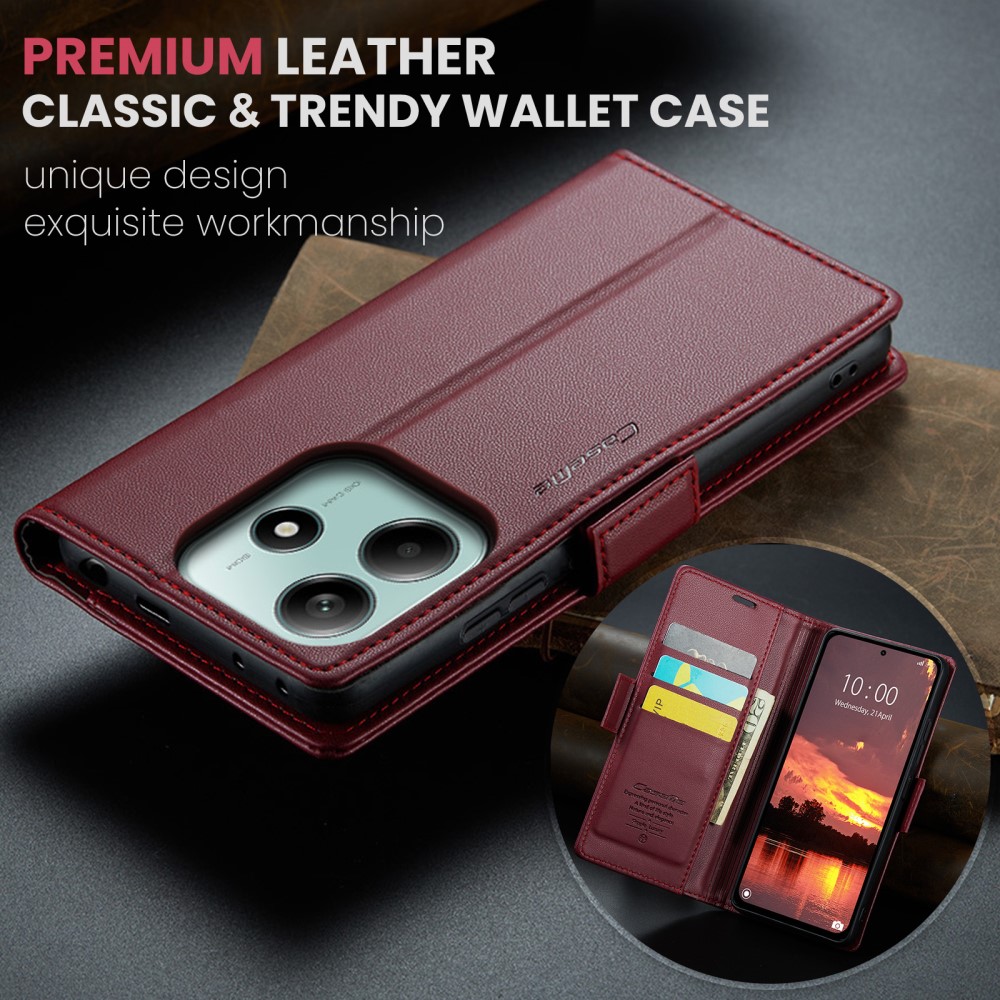 Θήκη Xiaomi Redmi Note 14 5G CASEME 023 Series Πορτοφόλι με βάση στήριξης, υποδοχές καρτών και μαγνητικό κούμπωμα από συνθετικό δέρμα και TPU μπορντό