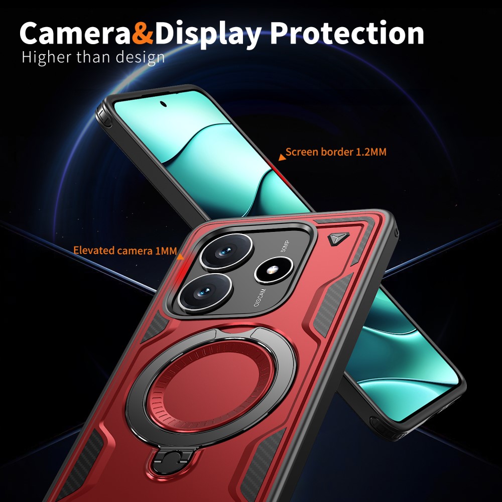 Θήκη Xiaomi Redmi Note 14 5G Mad Mask Πλάτη Military Protection με Μαγνητικό δαχτυλίδι ,συμβατό με ασύρματη φόρτιση Magsafe και Βάση στήριξης TPU κόκκινο