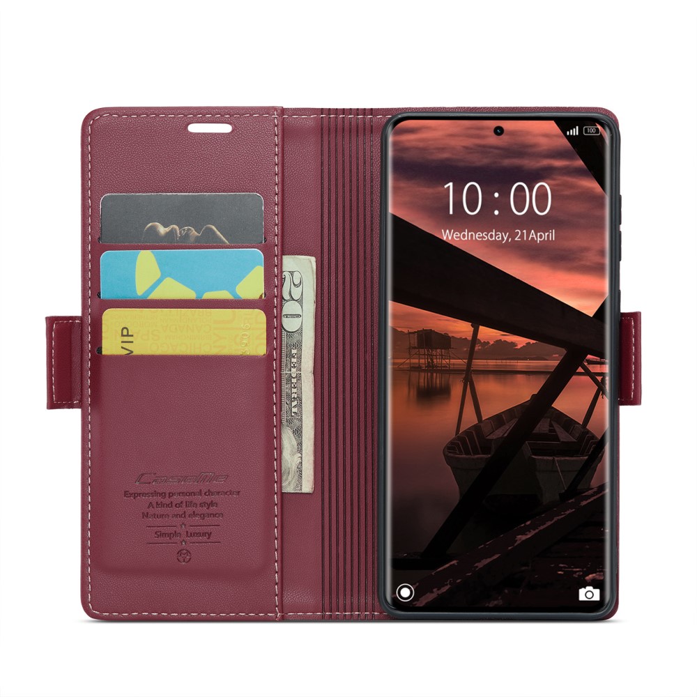 Θήκη Xiaomi Redmi Note 14 Pro 5G / Poco X7 5G CASEME 023 Series Πορτοφόλι με βάση στήριξης, υποδοχές καρτών και μαγνητικό κούμπωμα από συνθετικό δέρμα και TPU μπορντό