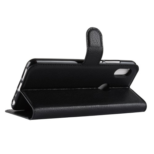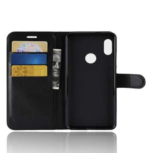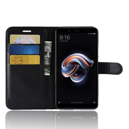 Θήκη XIAOMI Redmi Note 5 OEM Litchi Skin Leather με βάση στήριξης, υποδοχές καρτών και μαγνητικό κούμπωμα Flip Wallet δερματίνη μαύρο