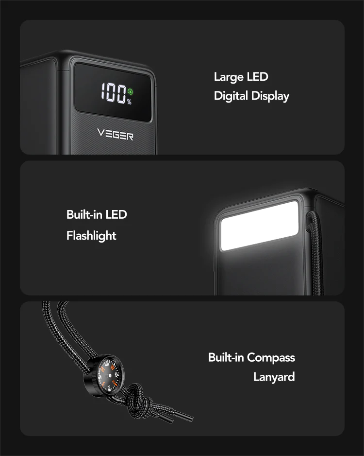 Το VEGER VP5001 Tank Lite είναι το απόλυτο power bank για εκτεταμένα ταξίδια, κάμπινγκ και καταστάσεις εκτός πρίζας. Με τεράστια χωρητικότητα 50000mAh, 6 θύρες, ενσωματωμένο φακό LED και πυξίδα – είναι σχεδιασμένο για τις πιο απαιτητικές συνθήκες.